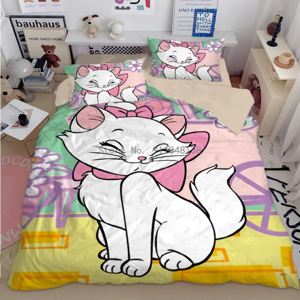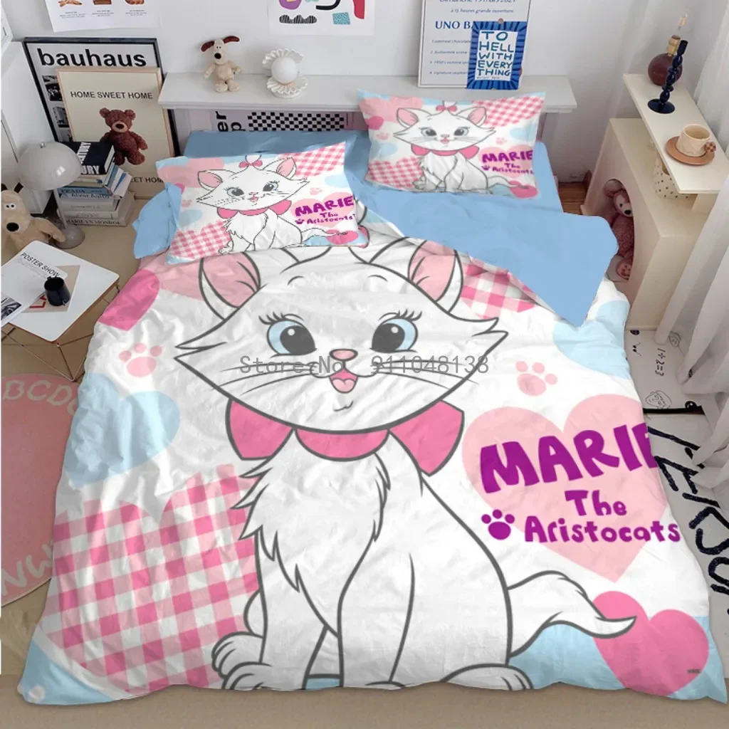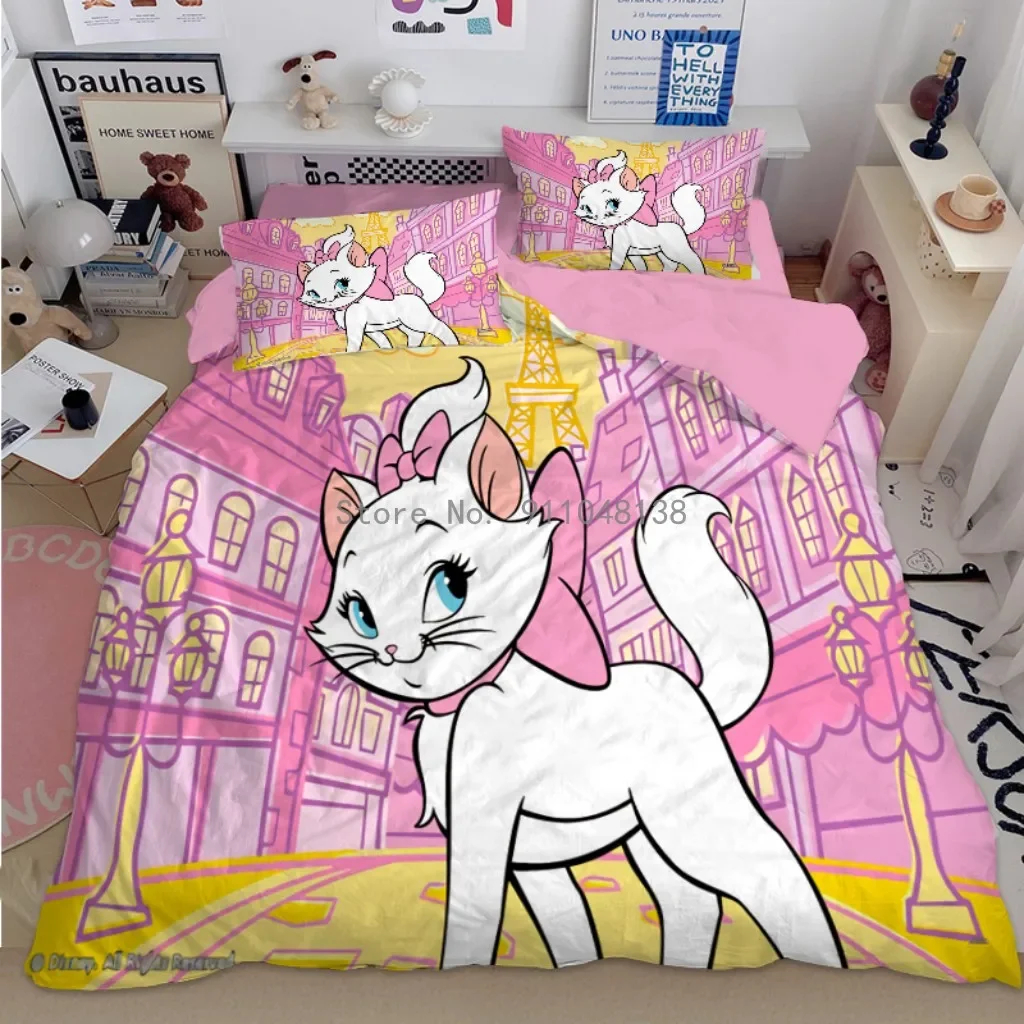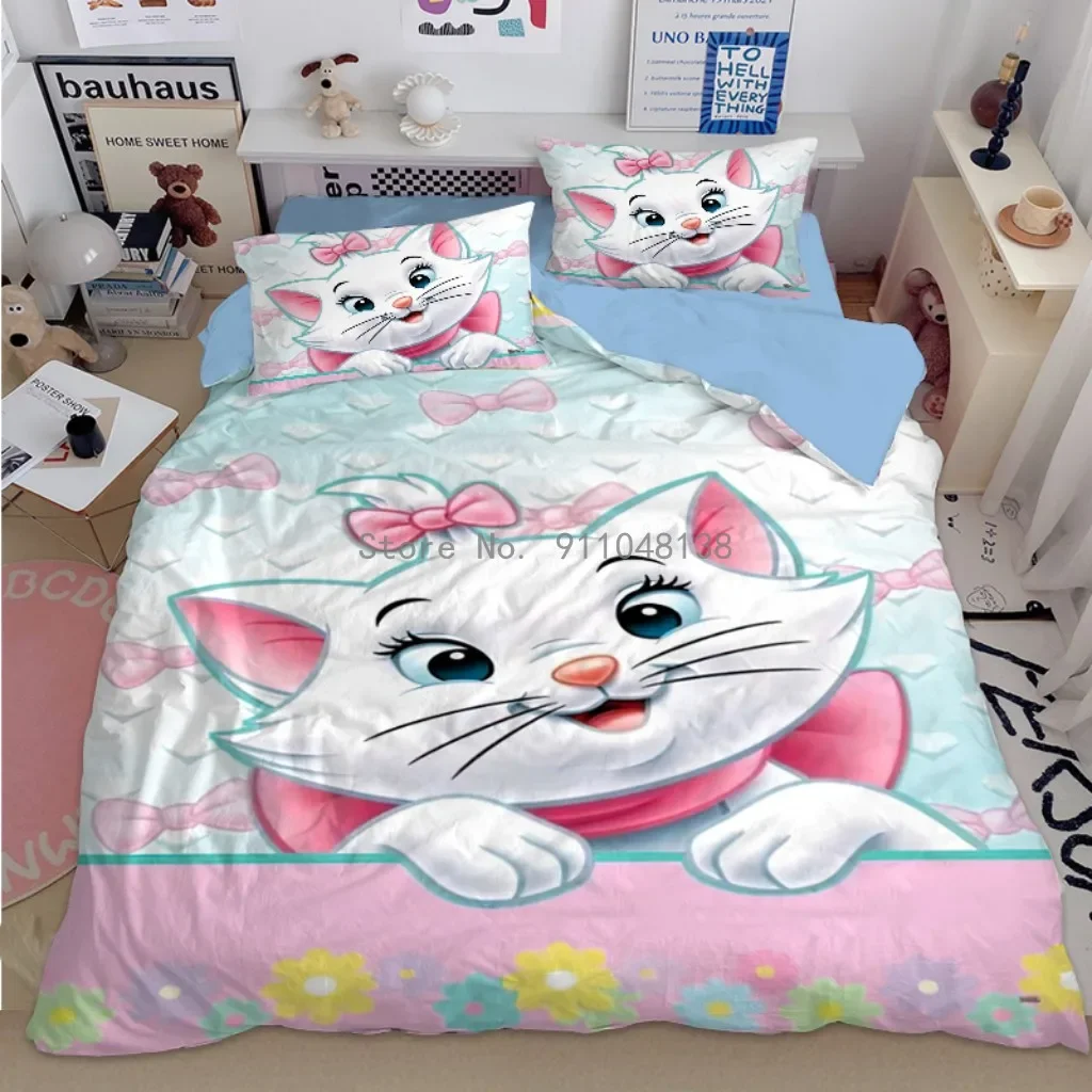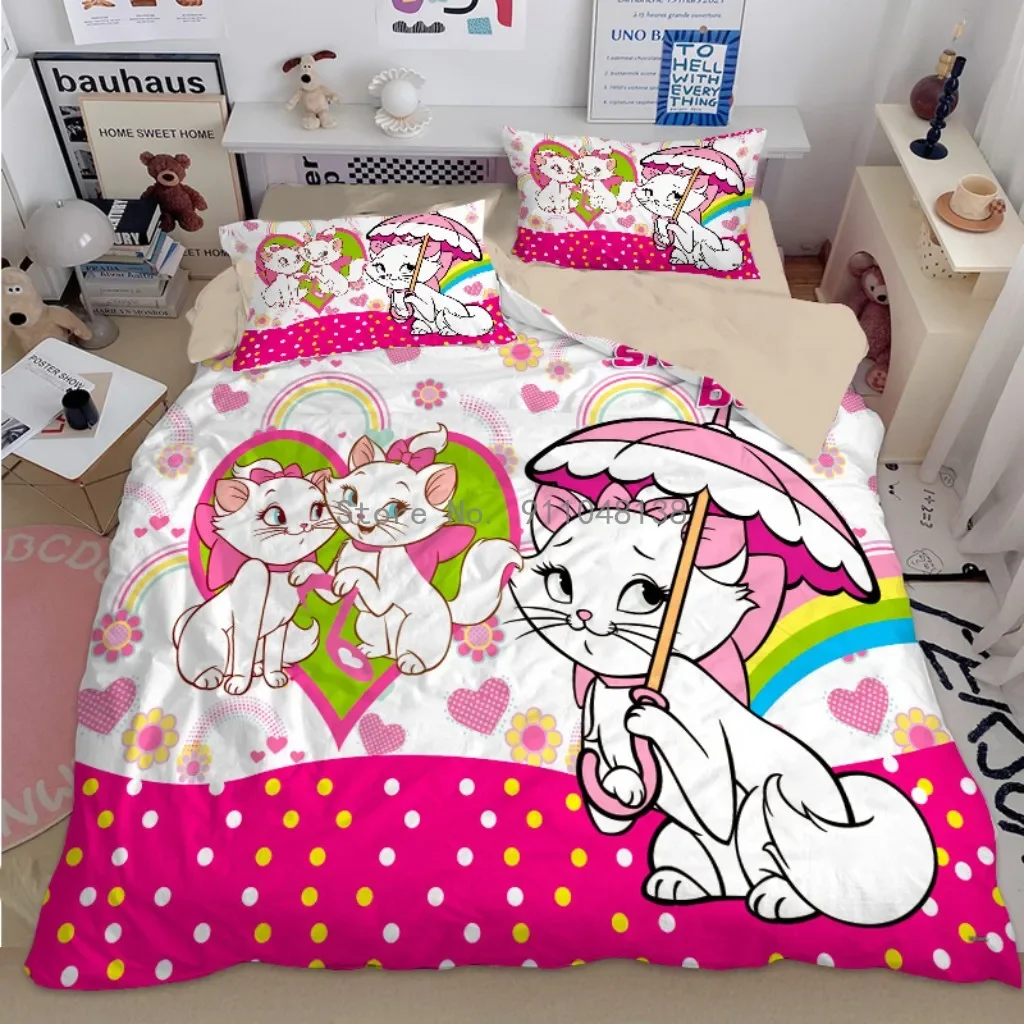 Hot Cute Pink Marie Cat Bedding Set Queen King Size Bed Set Children Girls Baby Duvet Cover Pillowcase Birthday Gift