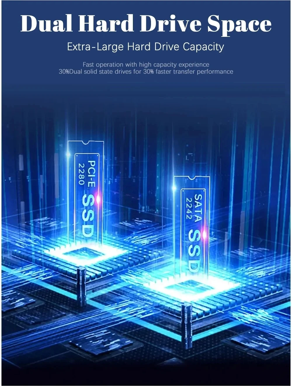 Fast operation with high capacity experience 30%Dual solid state drives for 30% faster transfer performance.