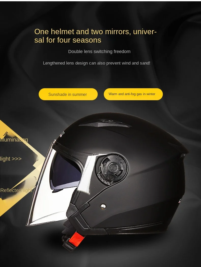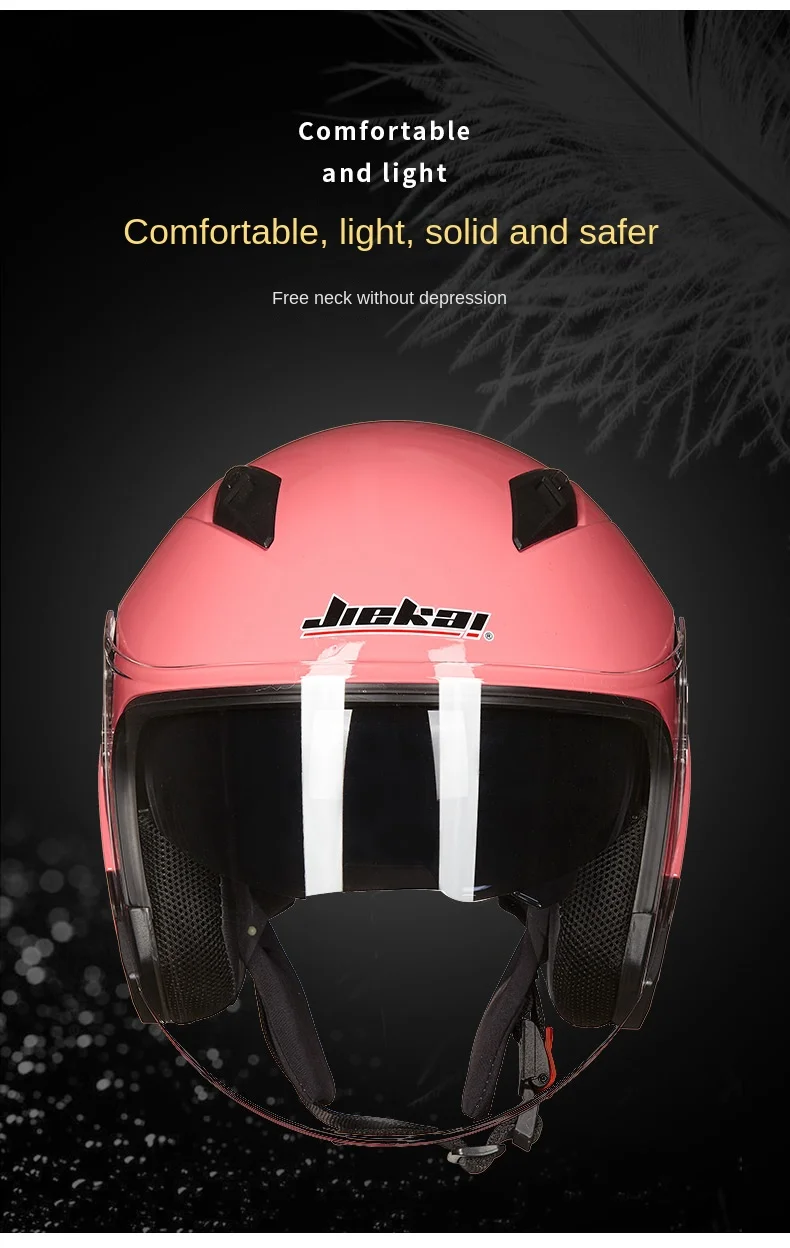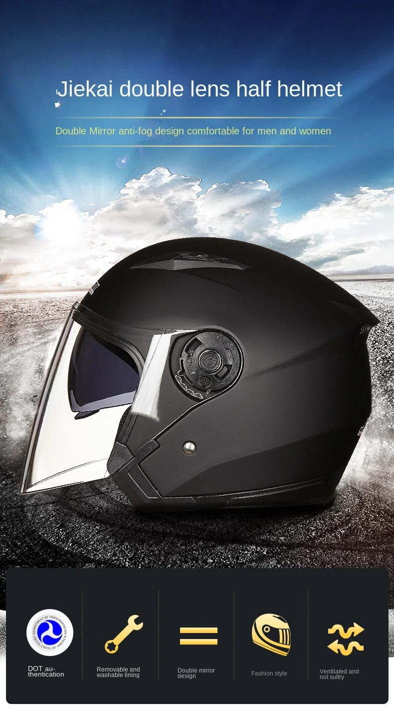 Jiekai-خوذة حقيقية للدراجات النارية مفتوحة الوجه ، دراجة نارية عدسة مزدوجة ، خوذة دراجة نارية صيفية وشتوية