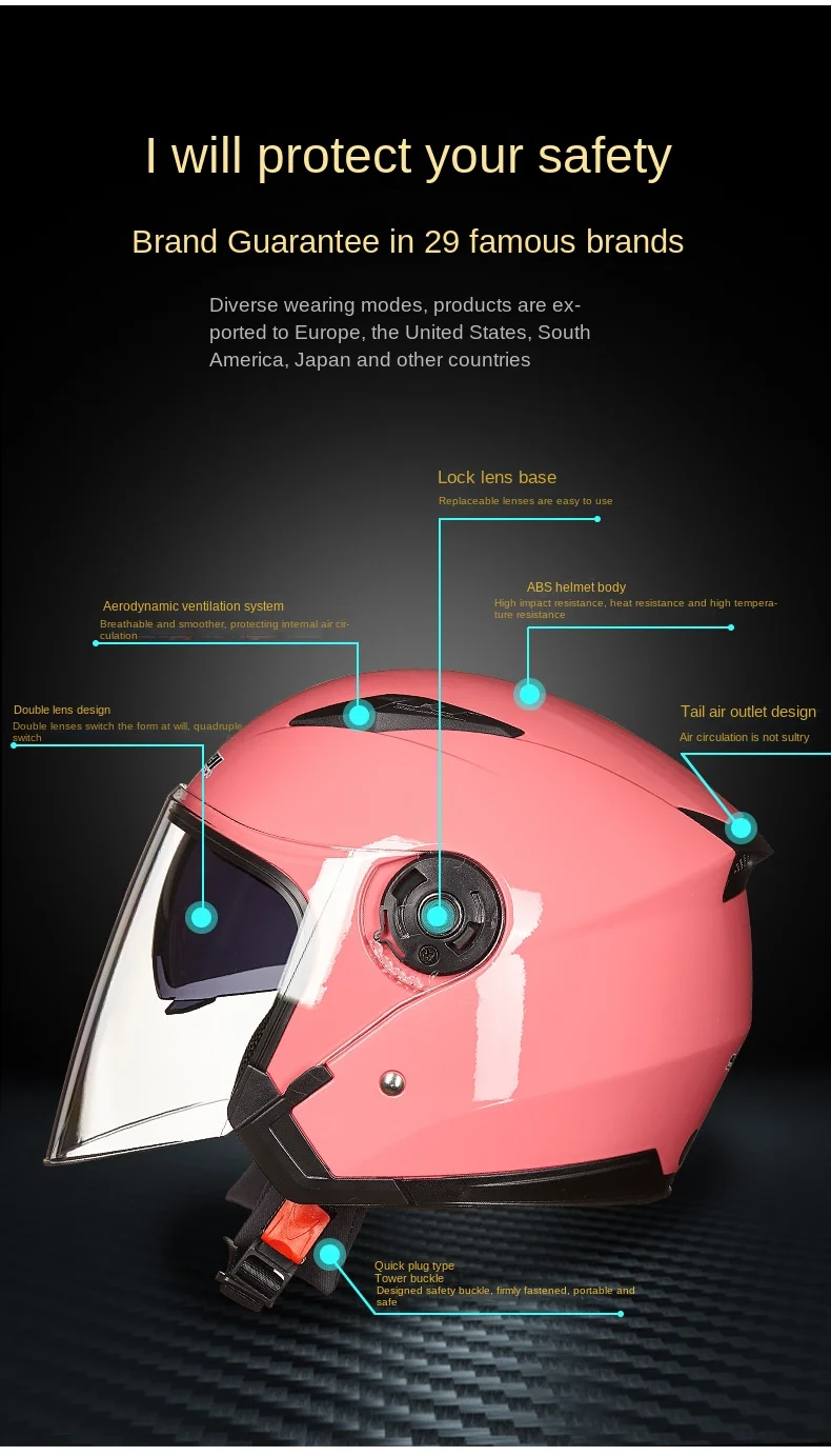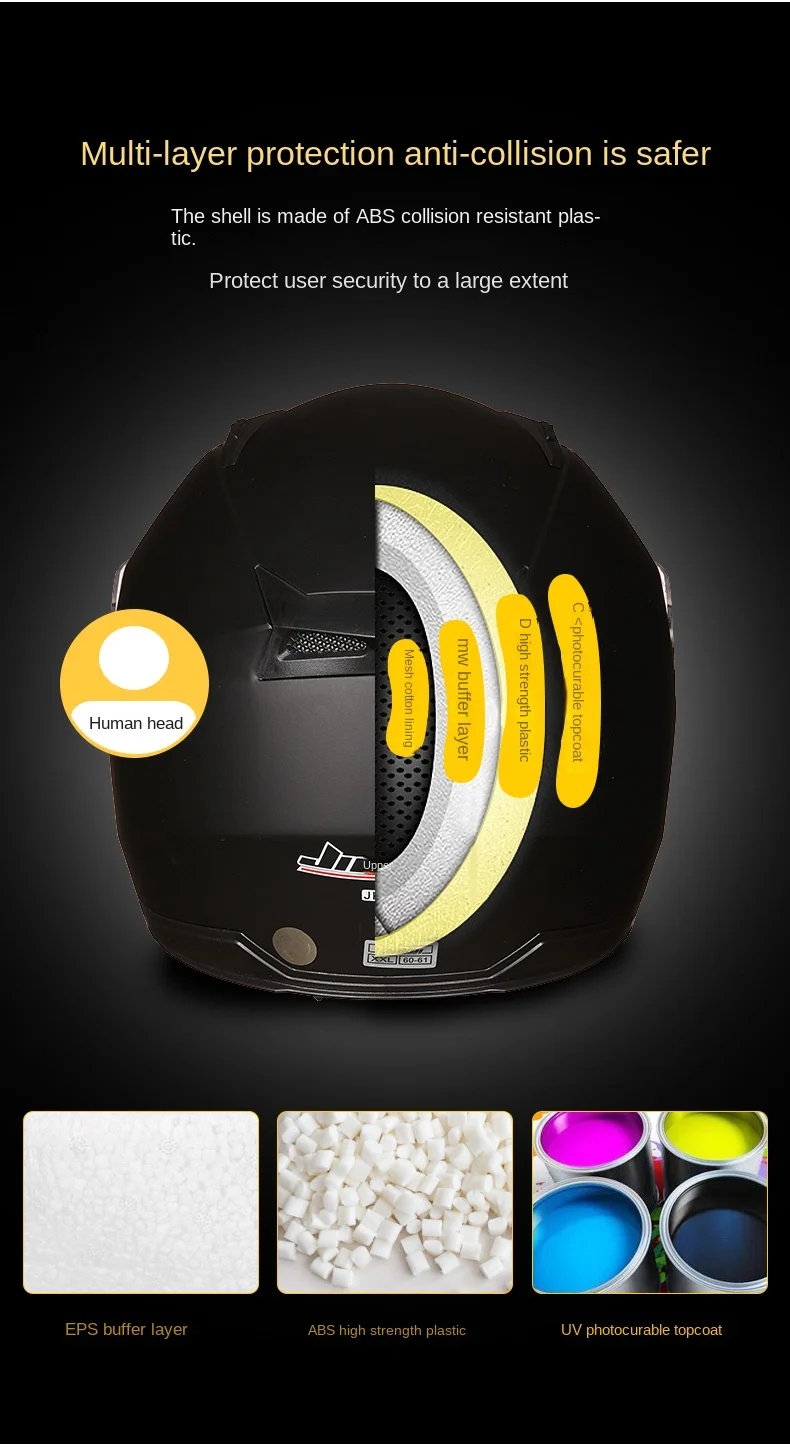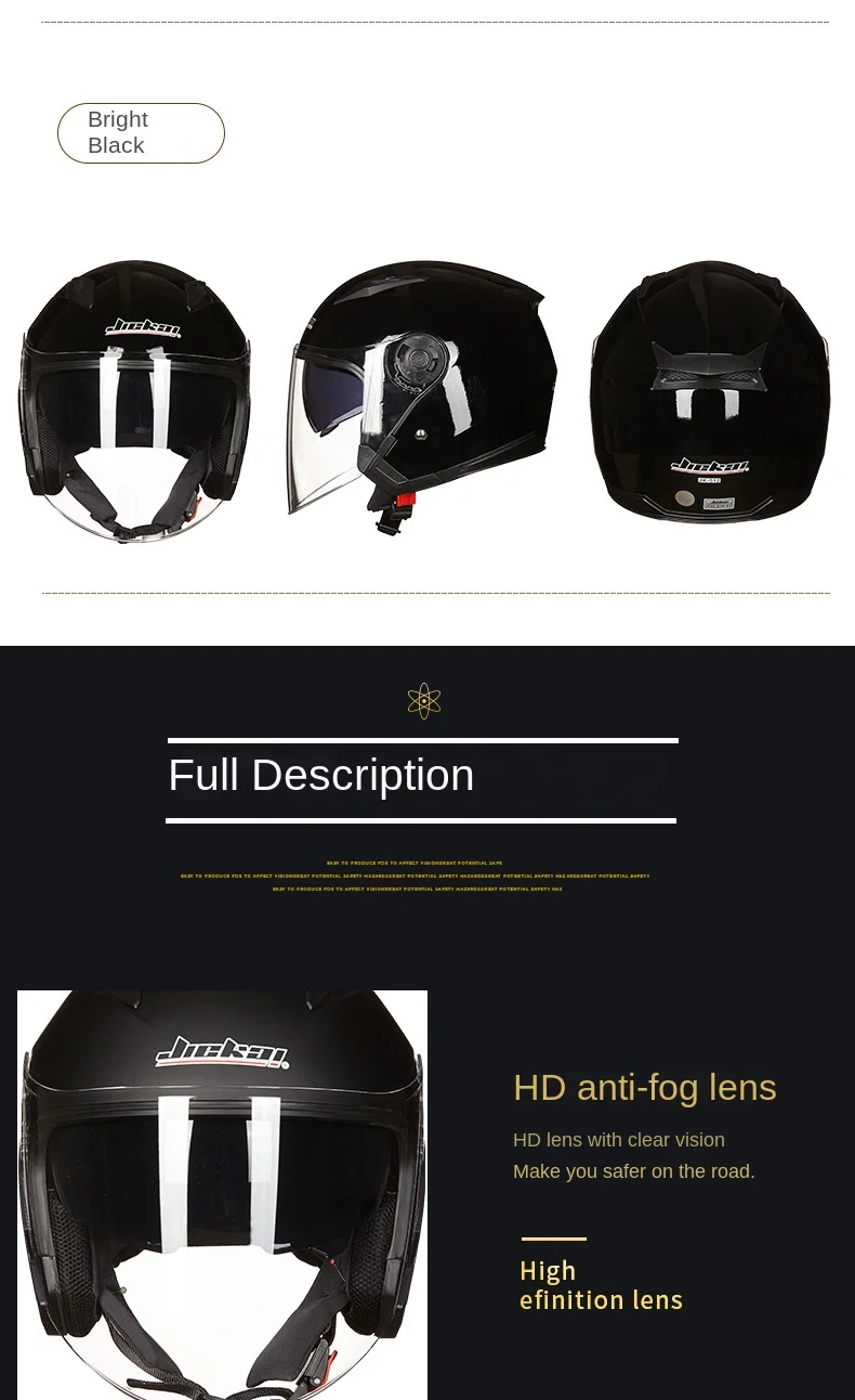 Jiekai-خوذة حقيقية للدراجات النارية مفتوحة الوجه ، دراجة نارية عدسة مزدوجة ، خوذة دراجة نارية صيفية وشتوية