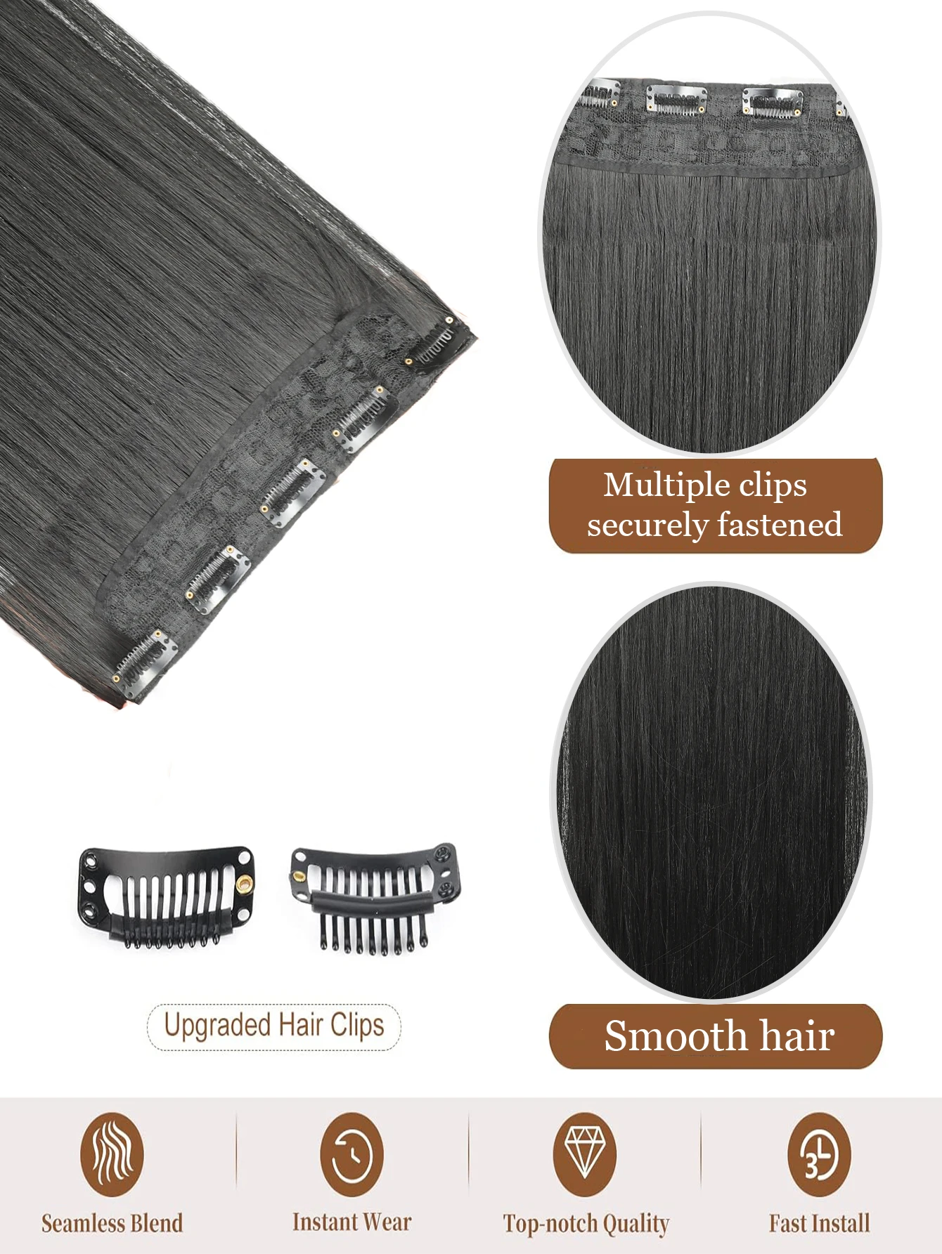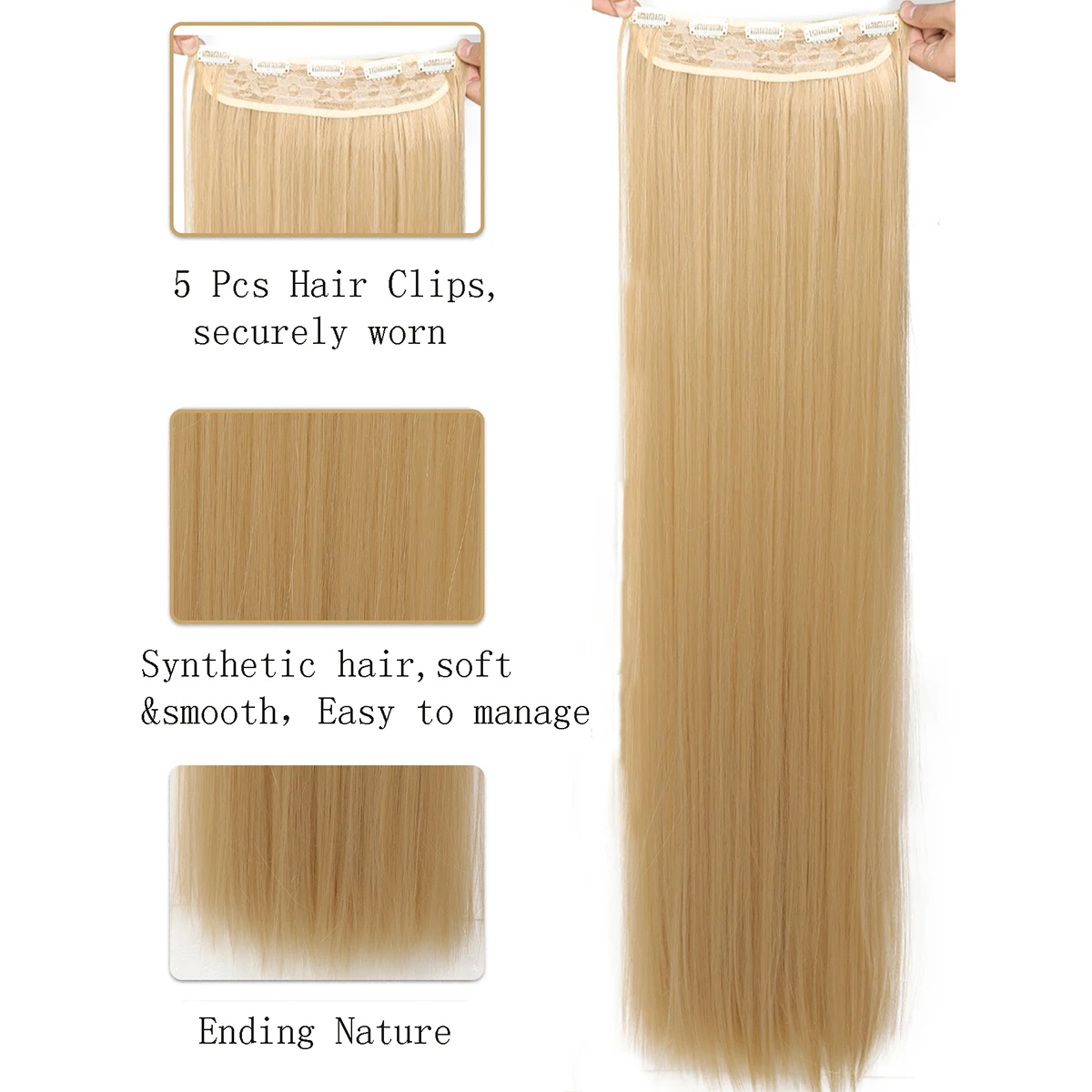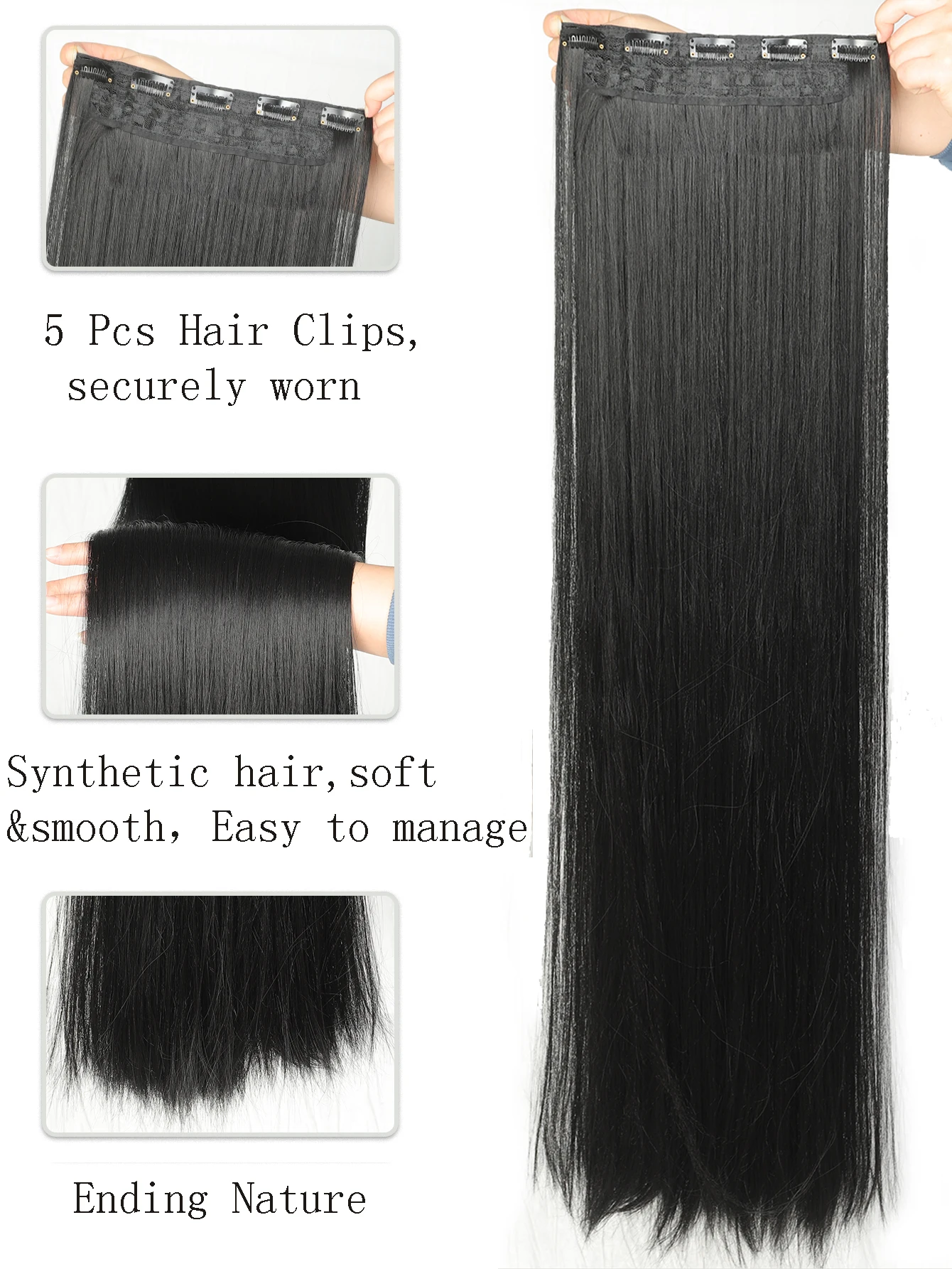 JINKAILI Synthetic 20-40 Inch Extra Long Straight Hair Extension 5 Clips Black Blonde Brown Red High temperature Fake Hairpiece