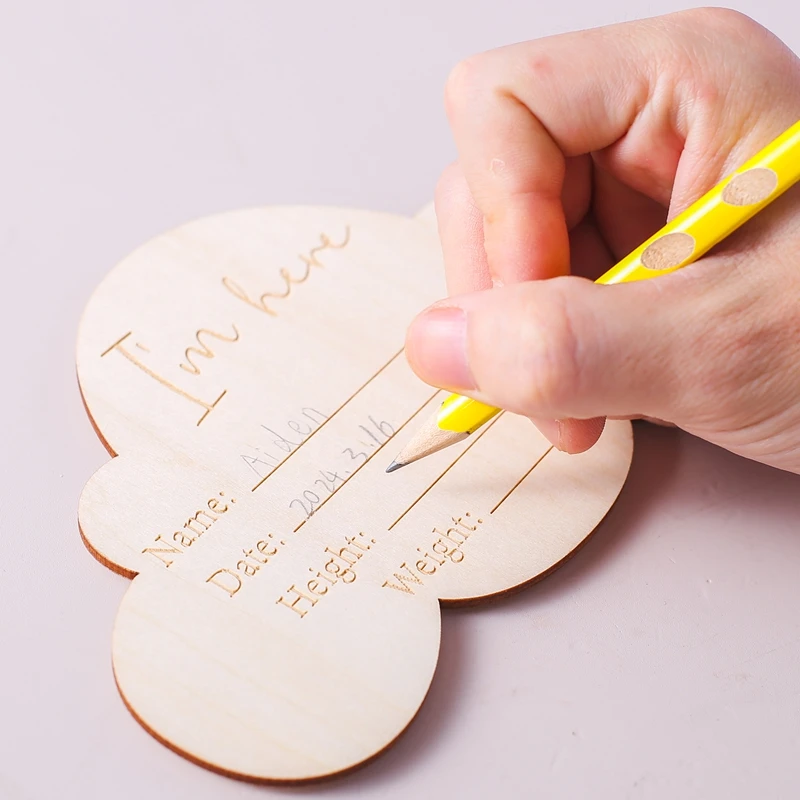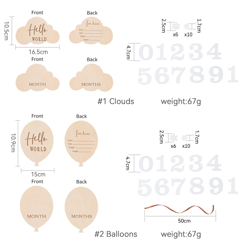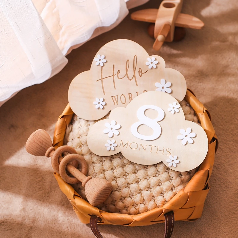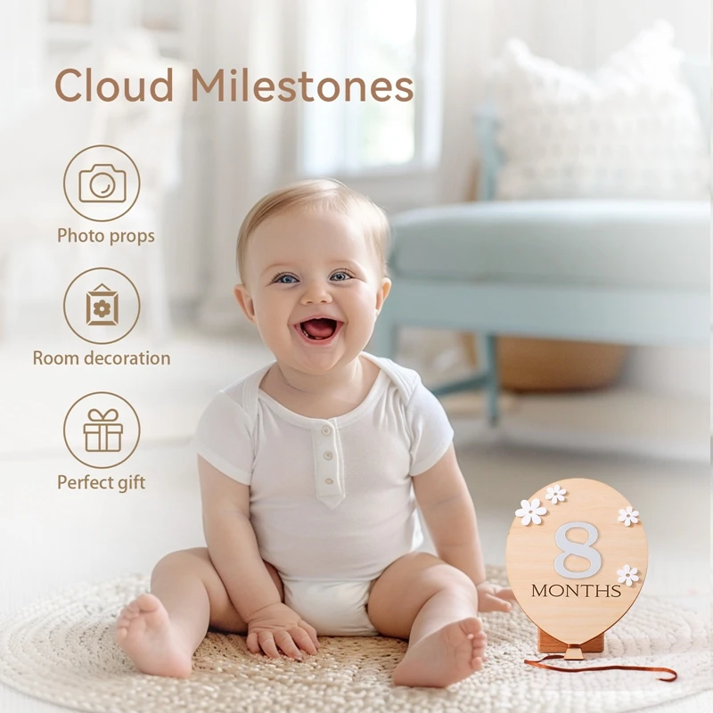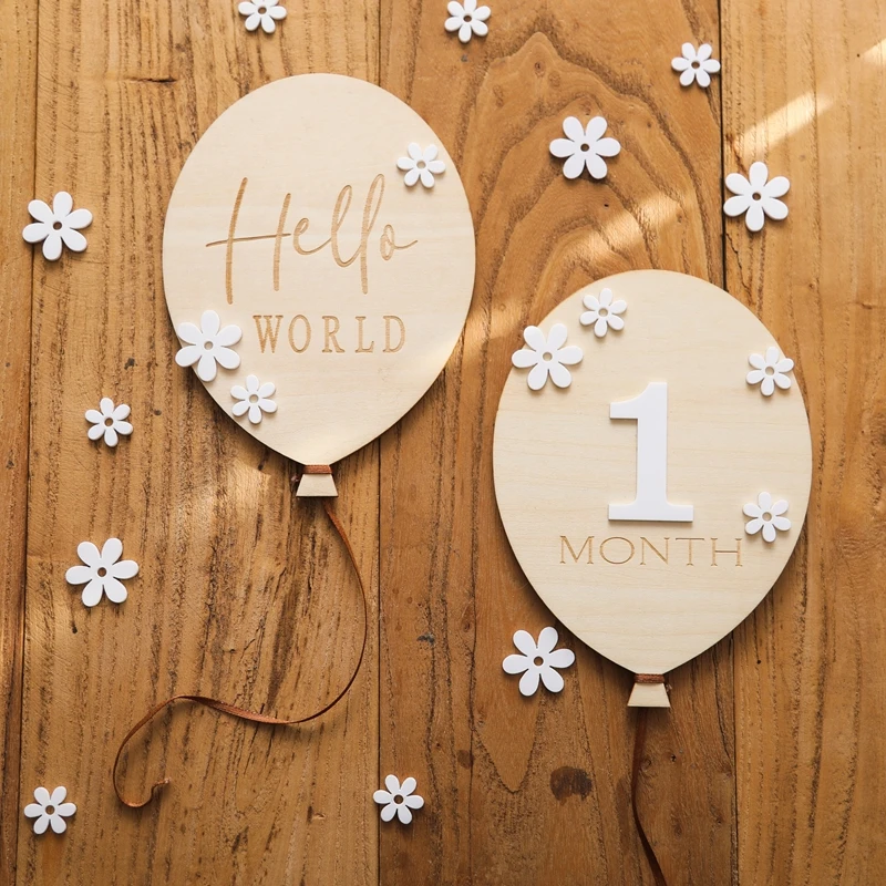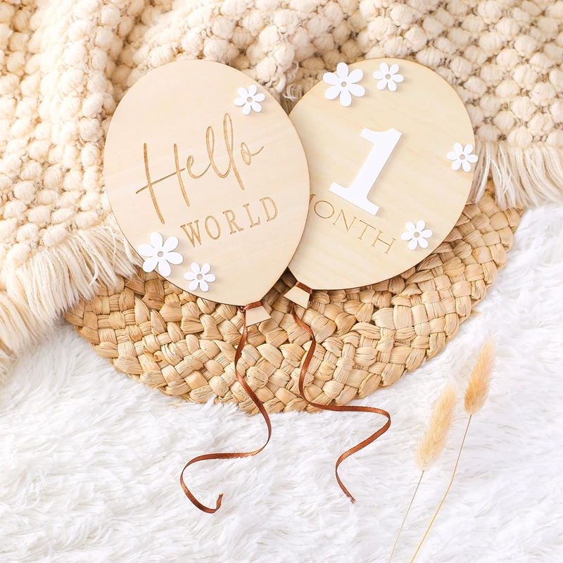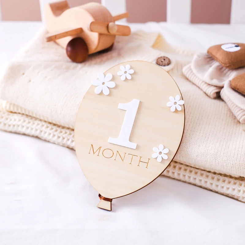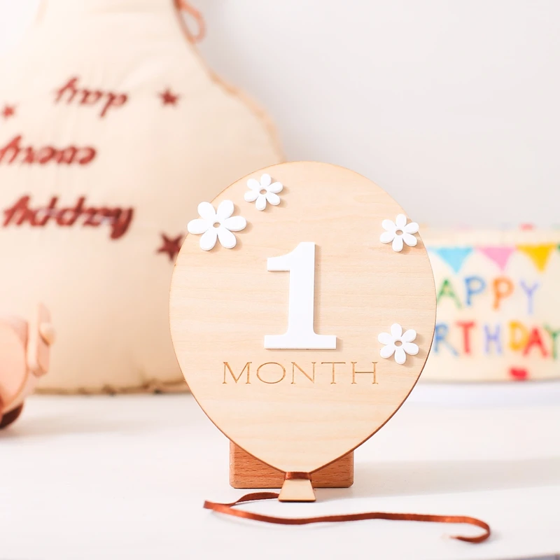 1Set Wooden Baby 0-12 Month Milestone Board Cartoon Balloon Record Card Newborn Gift Souvenir Baby Photo Photography Accessories