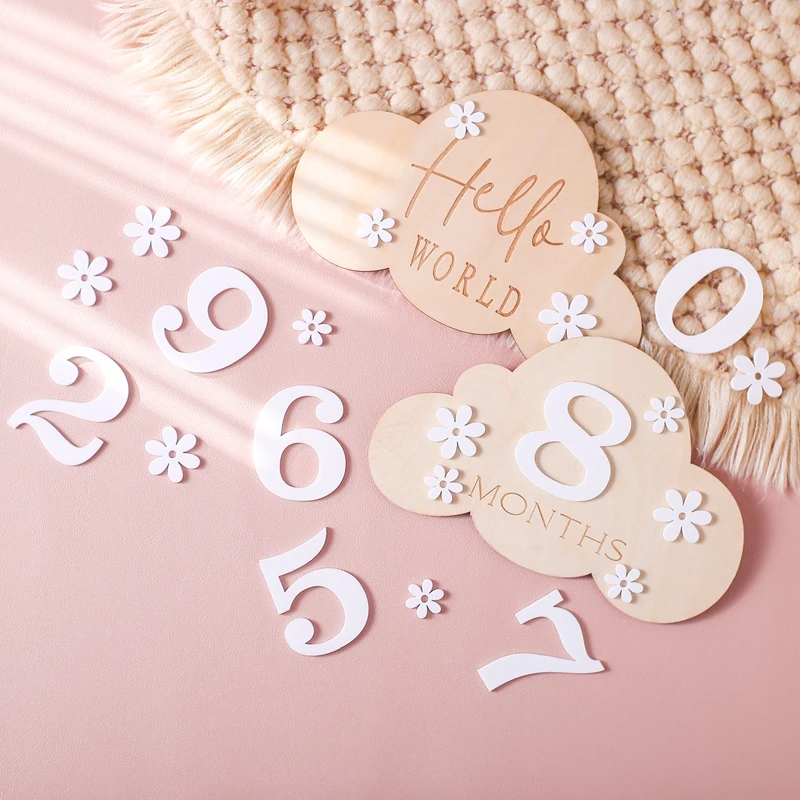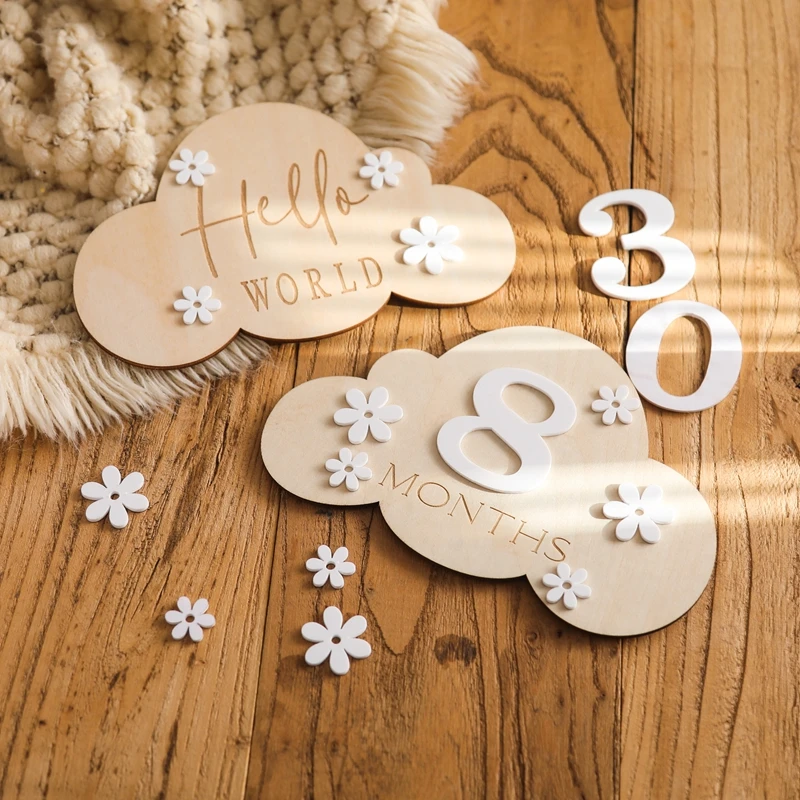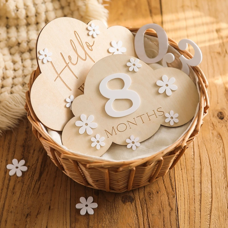 Korean Style Wooden Baby 0-12 Month Milestone Board Flower Record Card Newborn Gift Souvenir Baby Photo Photography Accessories