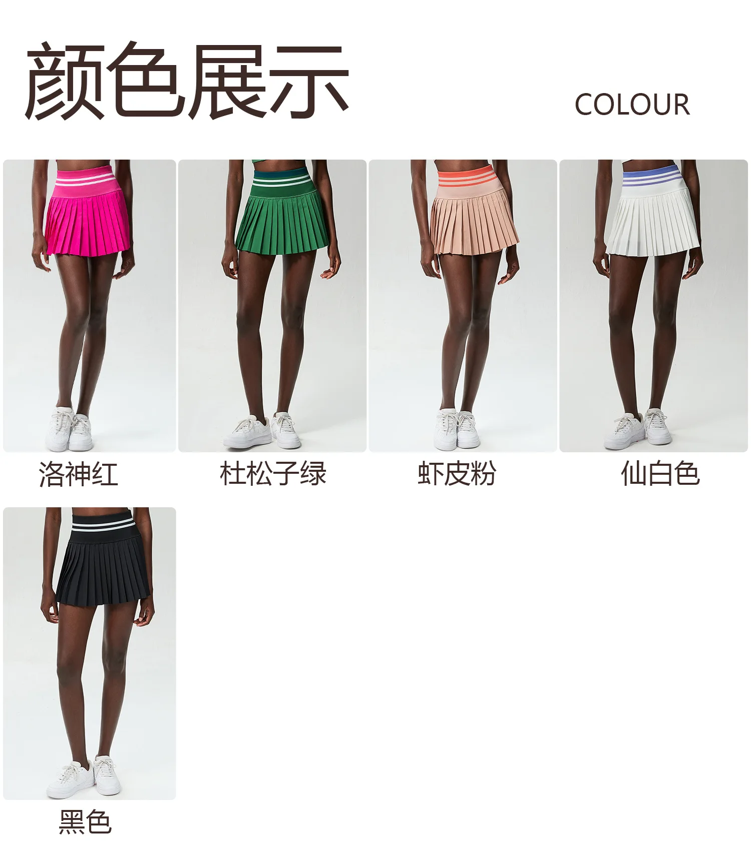 Ladies highwaist thread sports fitness skirt anti-light outdoor quick-drying large size running fitness badminton tennis dresses