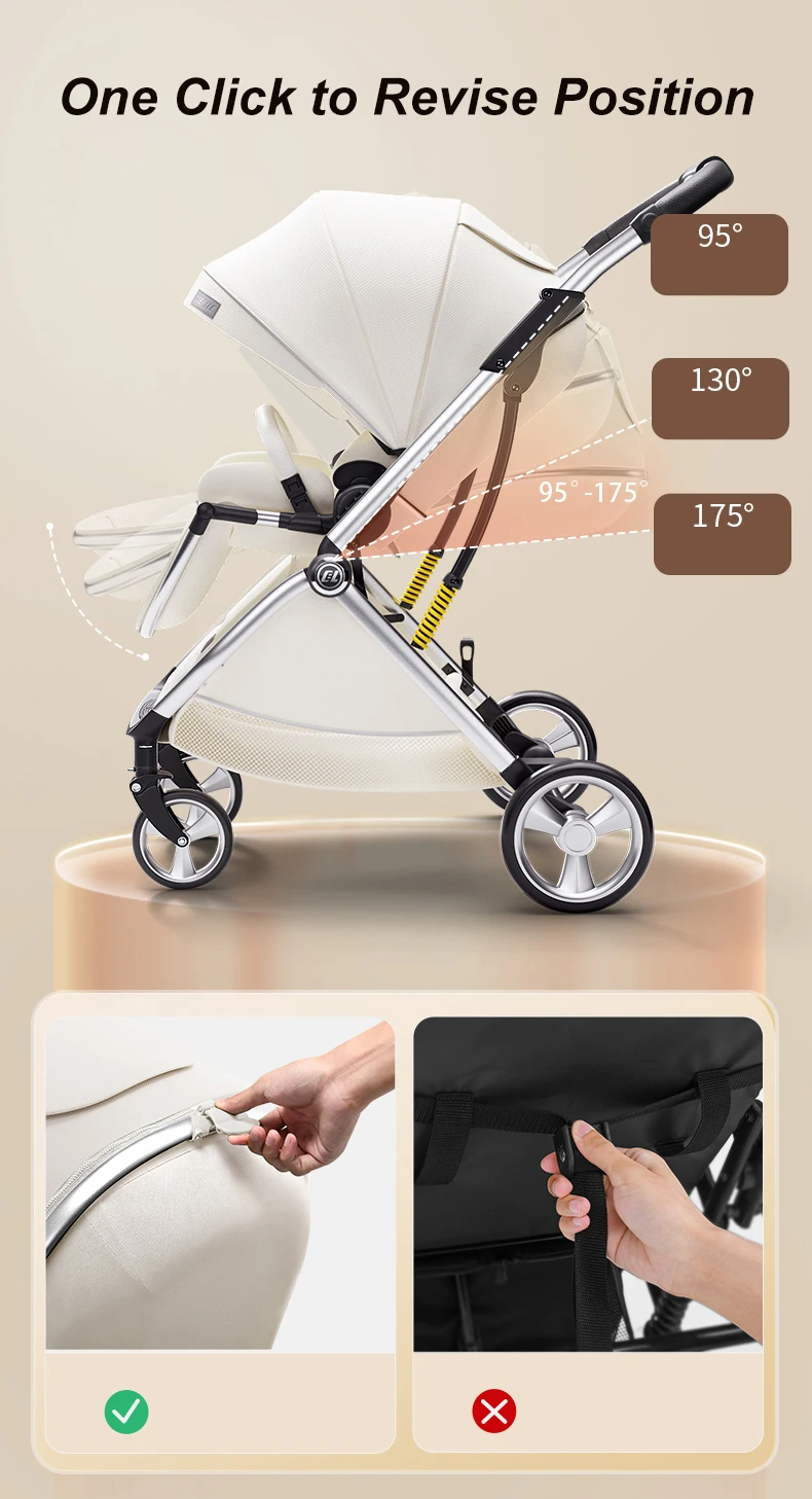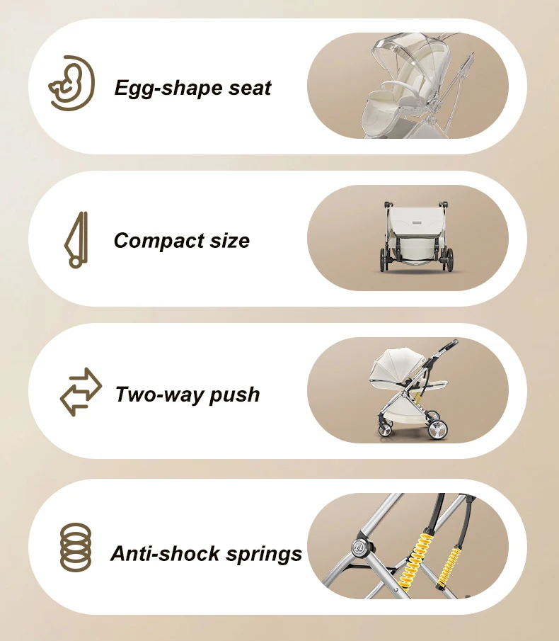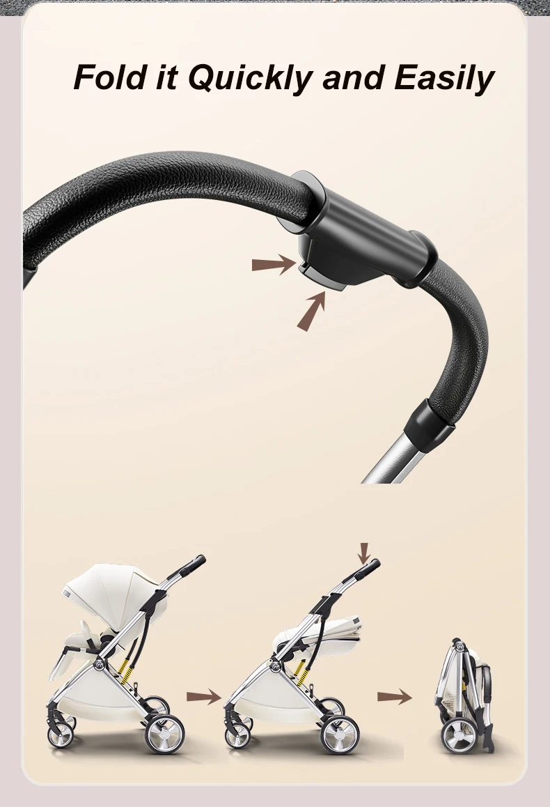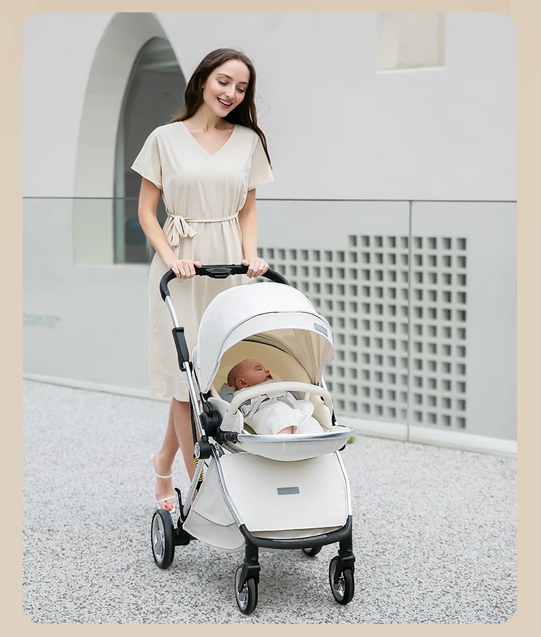 Luxurious Baby Stroller 3 in 1 Egg-shaped Seat for Newborn One Hand Recline Pushchair Pram Compact Size
