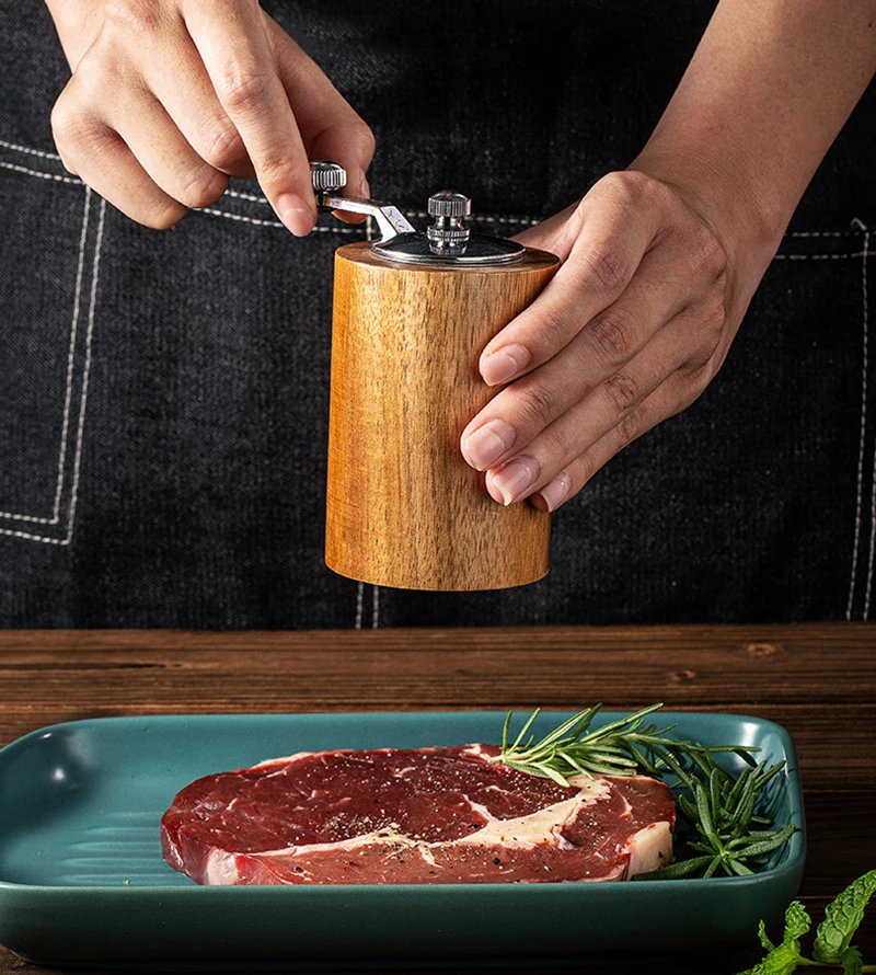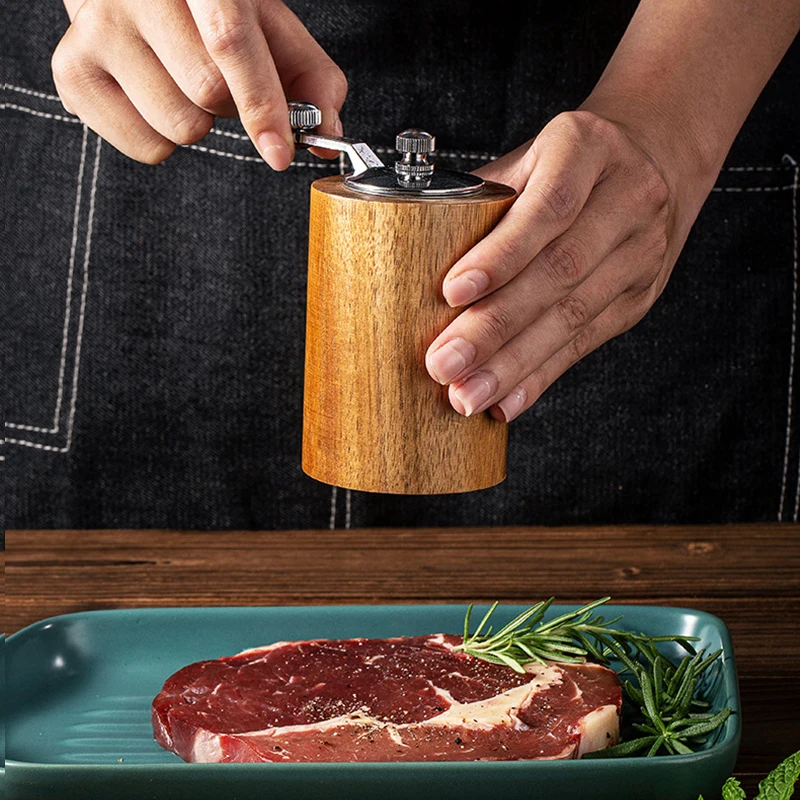 Material: The pepper grinder is made of stainless steel and wooden