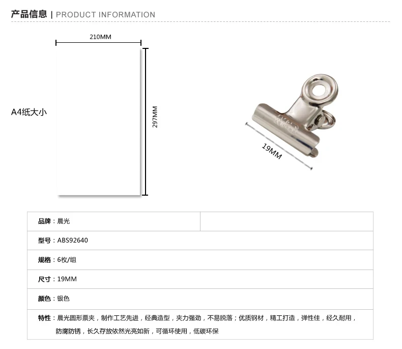 M&G 6pcs Ticket Holder Office Supplies Stationery Bill Clip Stainless Steel Metal Iron Round 19mm Clamp Abs92640