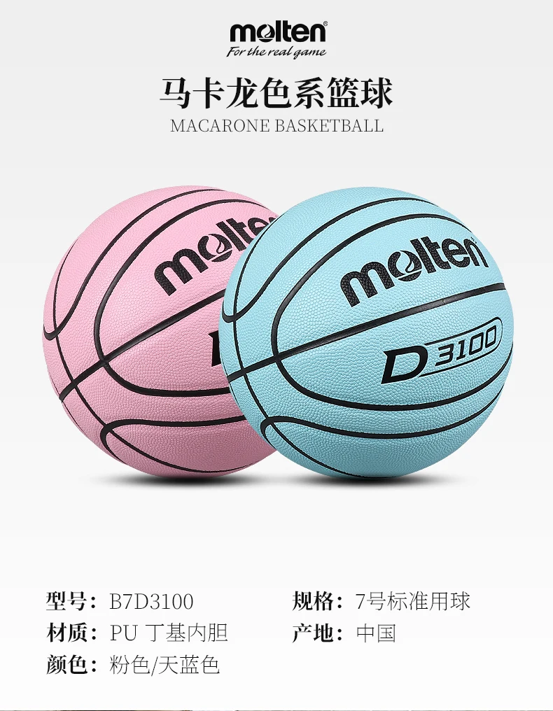 Molten Basketball Ball BD3100 Official Size 7 Blue/Pnk PU Leather Ball for Outdoor Indoor Match Training Men Women Adult