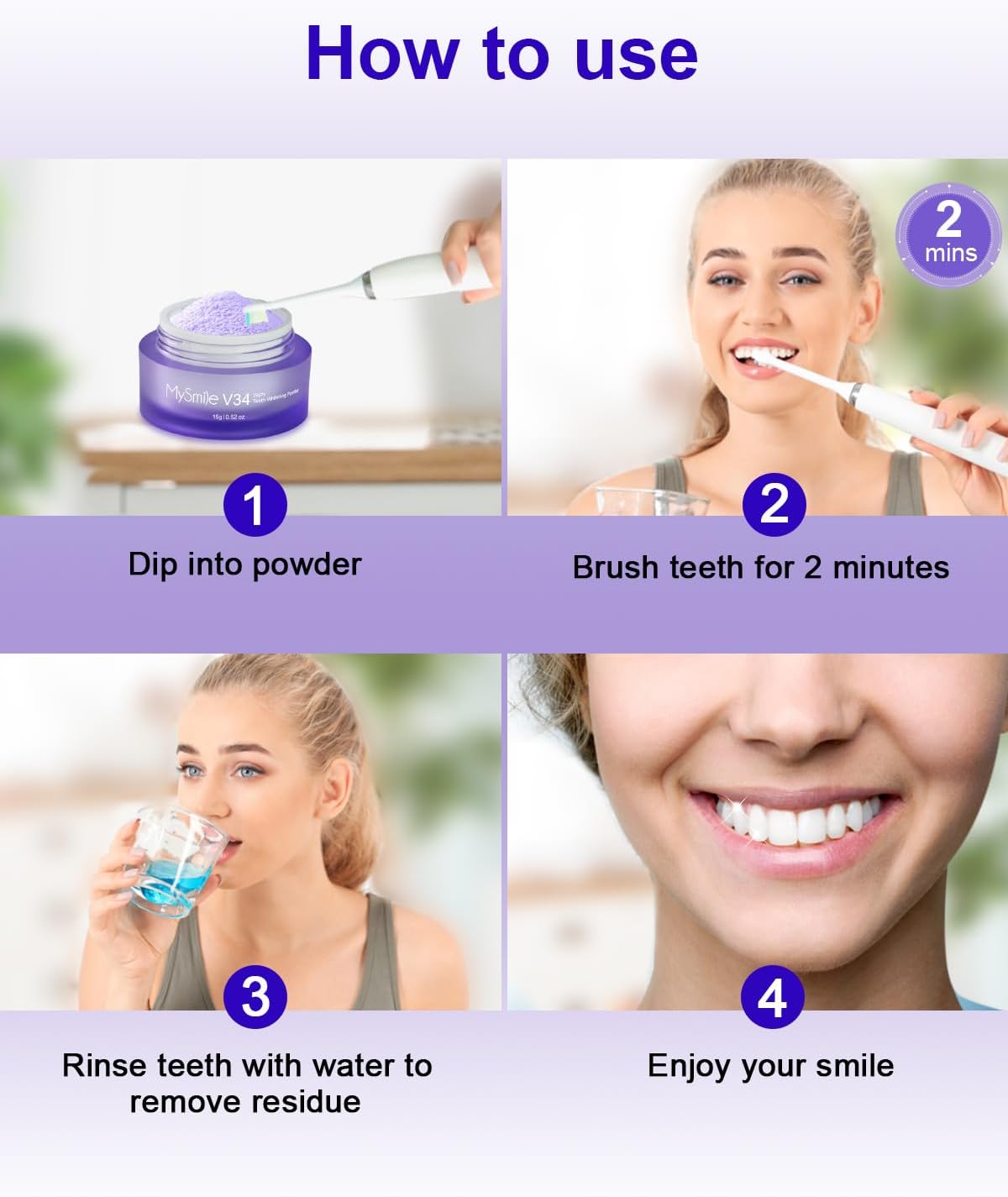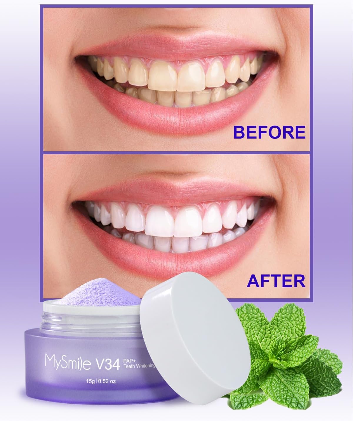 About this item SUPPORTS OVERALL ORAL HEALTH: Our oral health is a vital part of our general wellness & contributes to our overall well-being. Mint Toothpowder from MySmile is crafted with healthy ingredients that will make your mouth happy. ZERO SENSITIVITY & PEROXIDE-FREE – Finally, a teeth whitener that’s both gentle and effective. Unlike peroxide-based formulas, which cause tooth sensitivity and gum irritation, our natural mint Non-Sensitive teeth whitening Powder without compromising your oral health. TEETH BRIGHT – unique combination of two water-soluble dyes allows any shade of yellow to be canceled for the brightest smile, without leaving any residue behind. Purple tones help to cancel yellow stains, leaving your teeth brighter. CAREFULLY CRAFTED: This teeth whitening formula was handcrafted with care & made with safe ingredients. We manufacture our products without things like synthetic additives, foaming agents, artificial flavors, fluoride, or preservatives. EASY-TO-USE & MESS-FREE – Our teeth powder is straightforward: just dip your toothbrush into the powder and brush for 1~3 minutes. Enjoy a hygienist-clean feeling and a minty-fresh flavor. › See more product details