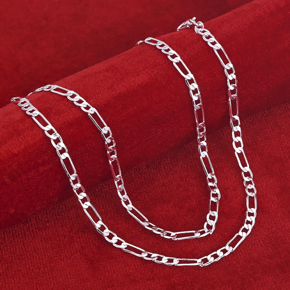 Noble new arrive 925 sterling silver 4MM chain for men Women Bracelet Necklace jewelry set lady Christma gifts charms wedding