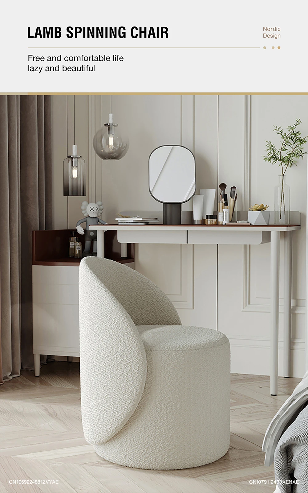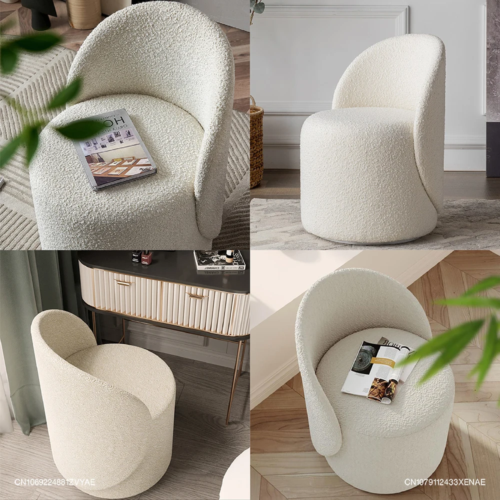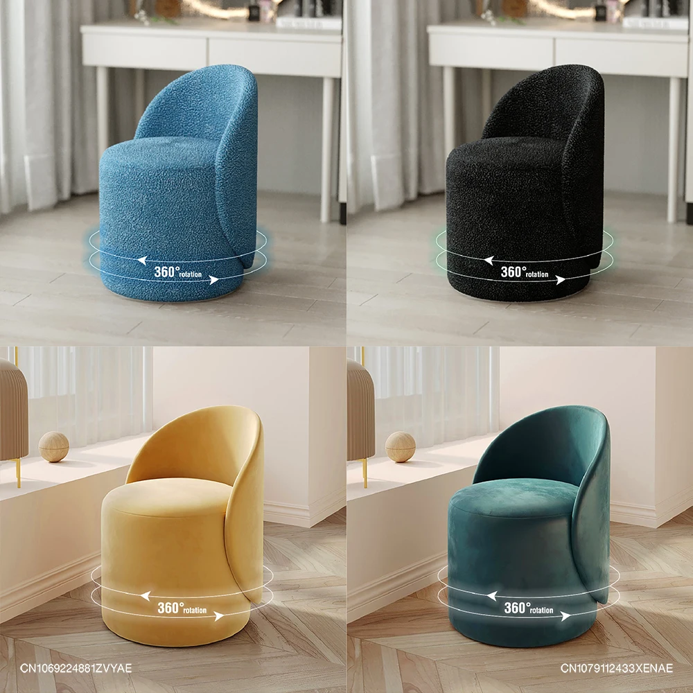 Nordic 360° Rotating Makeup Stools Dressing Chairs Light Luxury Bedroom Cashmere Lamb Backrest Dressing Table Stool Furniture