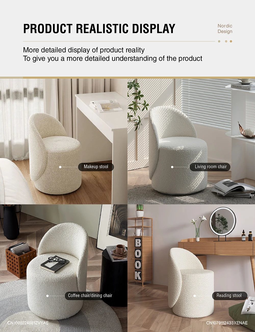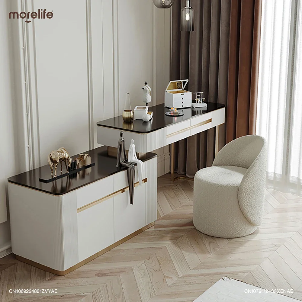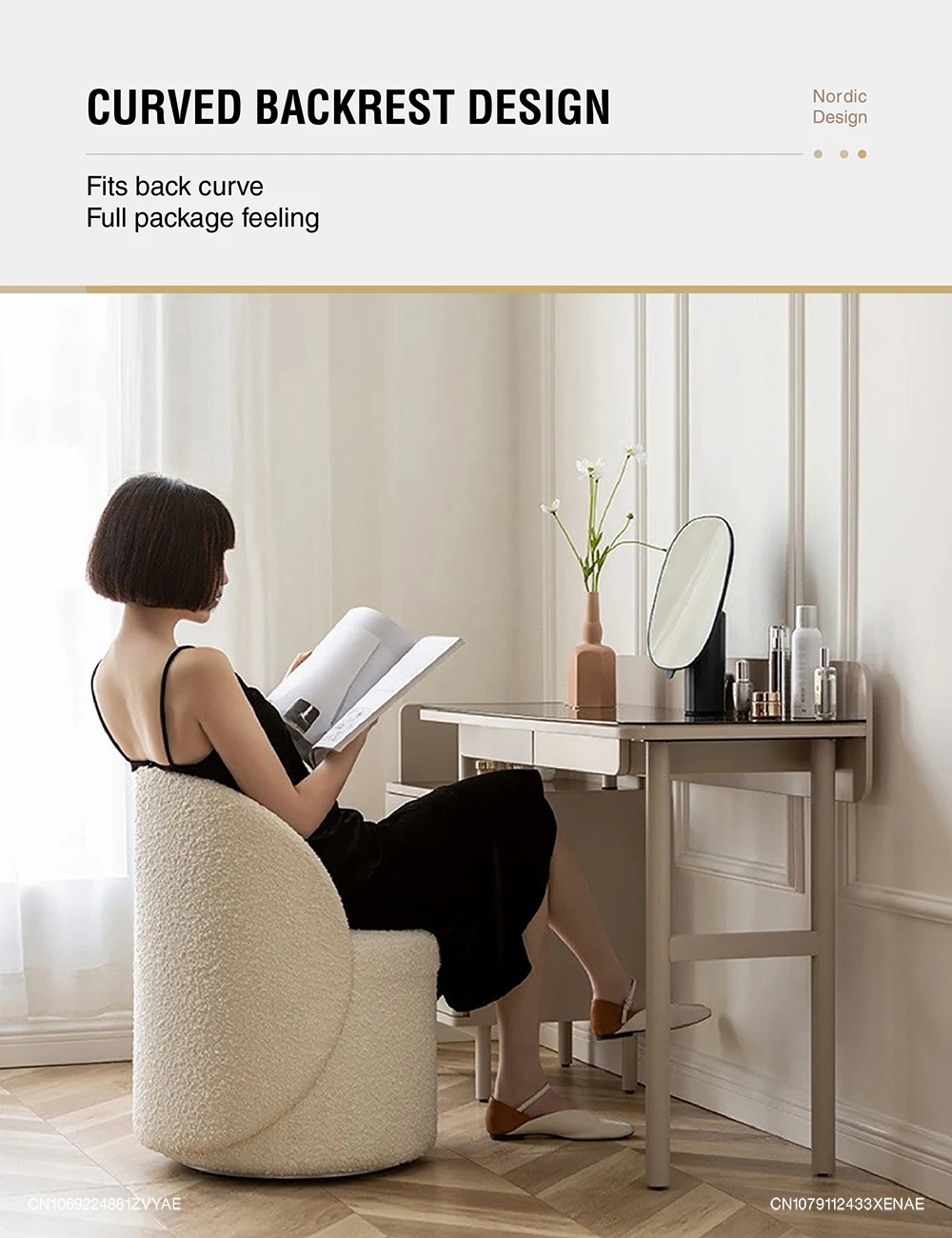 Nordic 360° Rotating Makeup Stools Dressing Chairs Light Luxury Bedroom Cashmere Lamb Backrest Dressing Table Stool Furniture