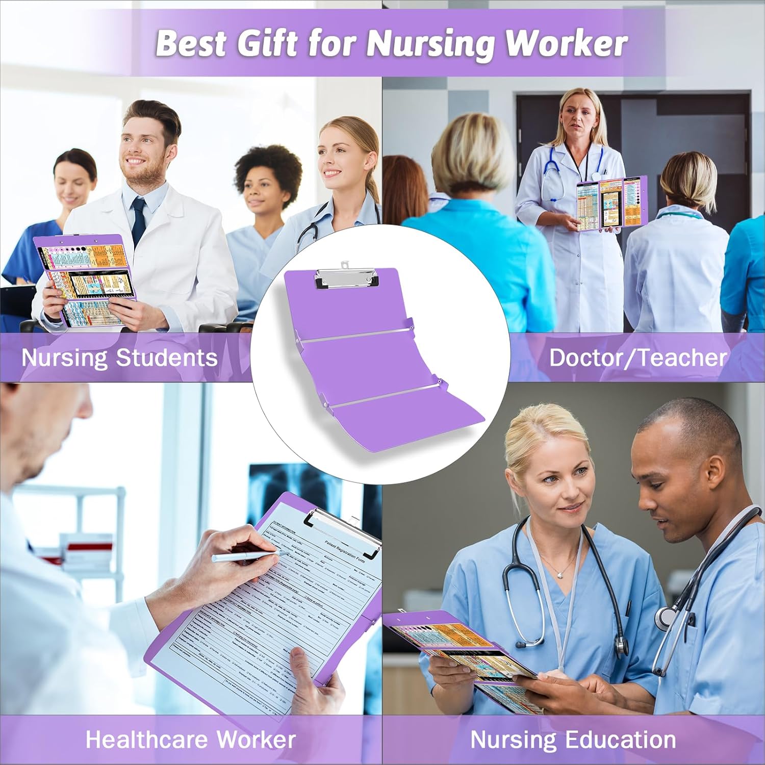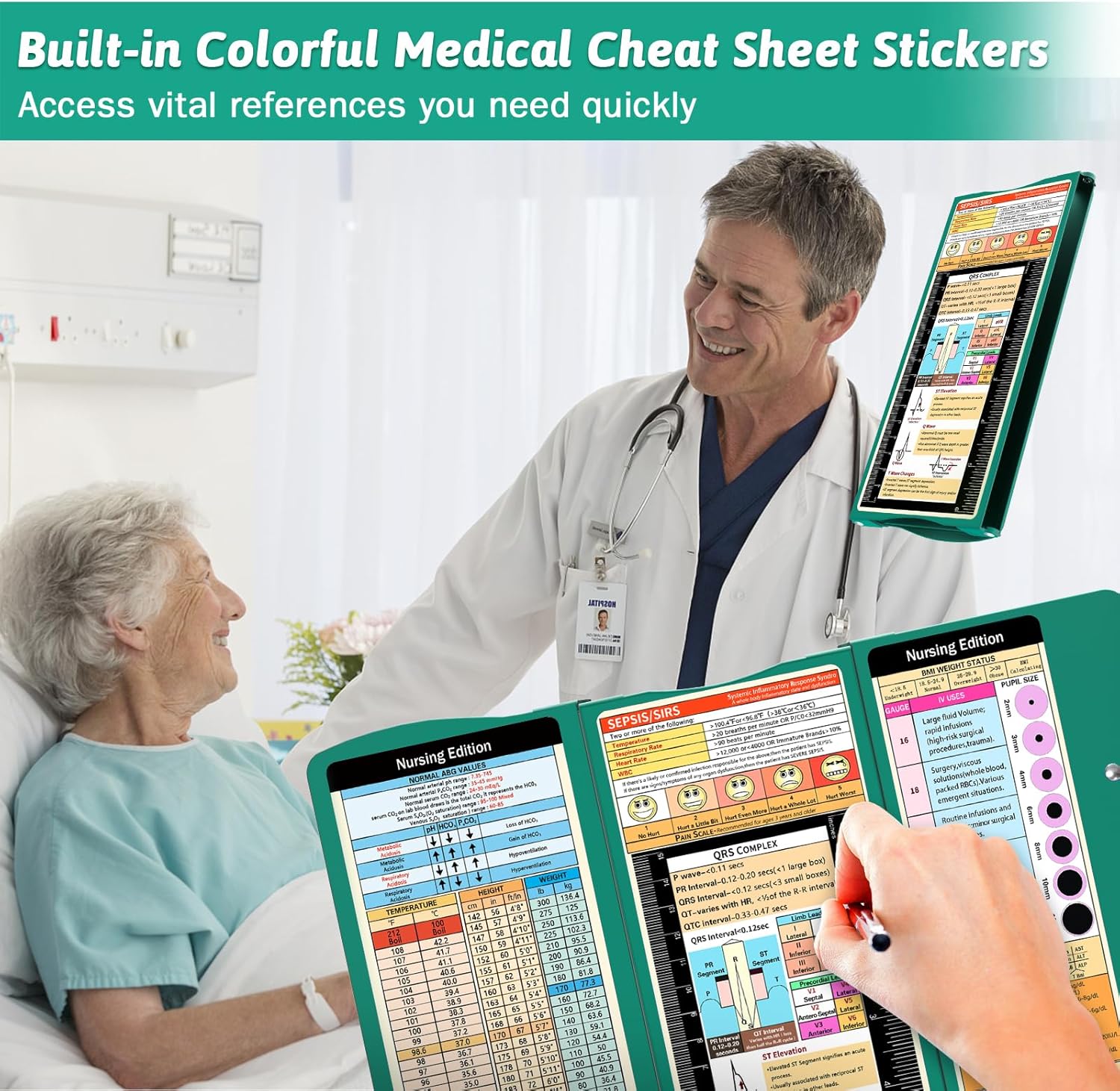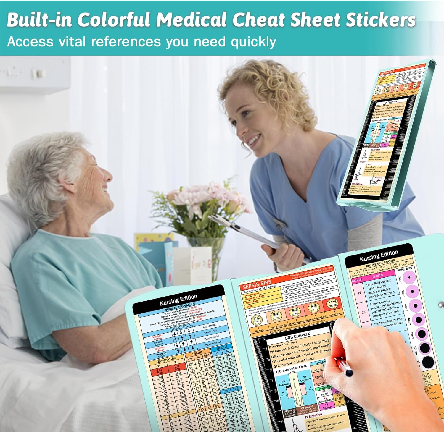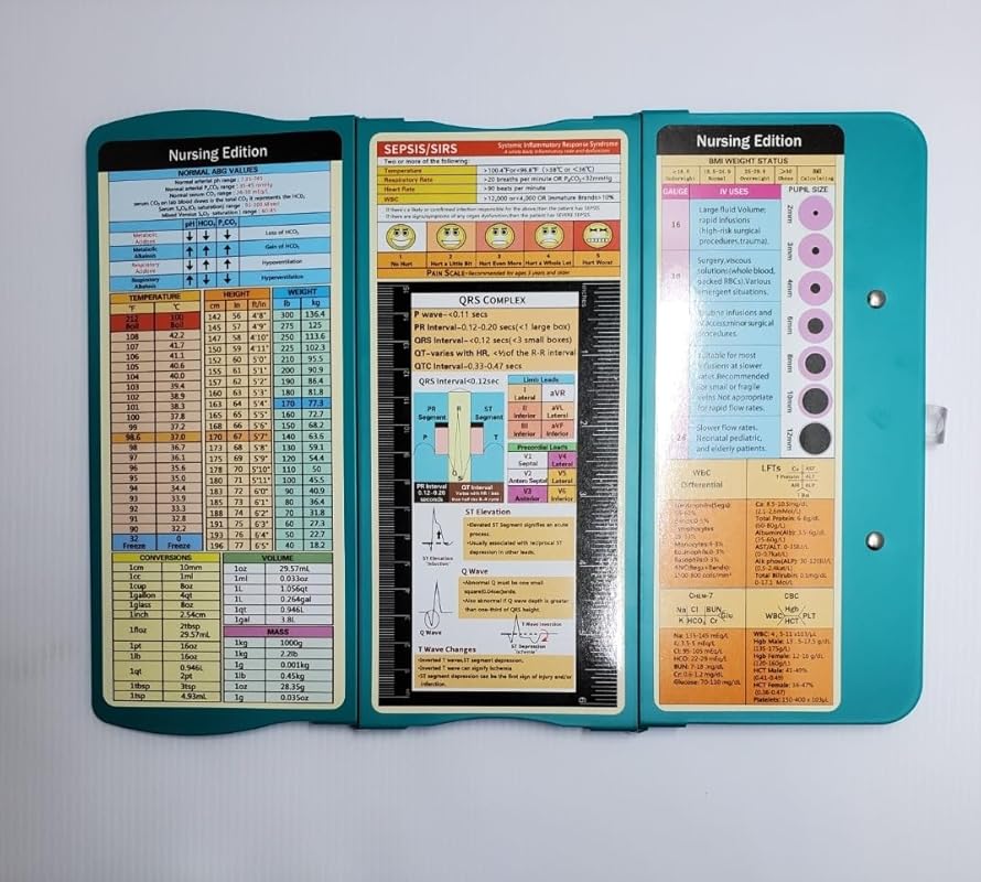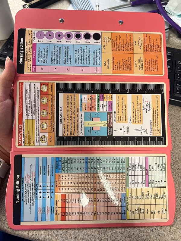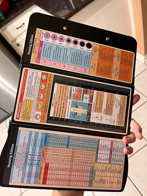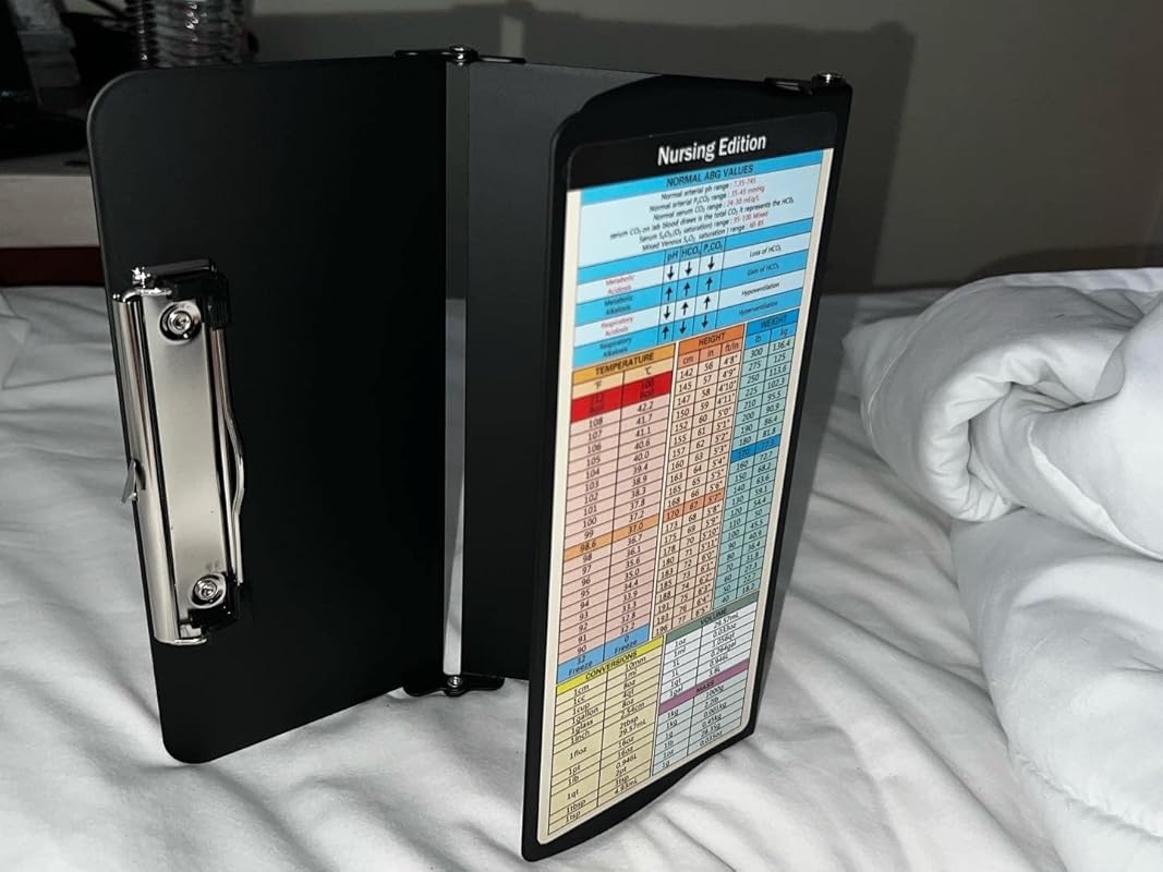 About this item 【Foldable Design & Pocket Size】Thoughtful 3 layers folding design, the nursing clipboards can be fold up to half to help you carry it everywhere, that also easy to carry on your pocket, handbags and backpacks .You can take quick notes during meetings or interviews, and nurse clipboard can also greatly secure all your vital documents or person information inside. 【Built-in Medical Cheat Sheets】The Mini pocket size clipboards features a color-coded reference cheat sheet that gives you quick access to the information you need, that can be easily forgotten in the middle of a hectic duty. Get a safe place to store patient sensitive material, quickly access vital references and have a portable writing surface. Content :Vital Signs, ABG, QRS Complex , BMI Weight Status, and more! 【Widely Used】This trifold clipboard is a great accessory for nurses, nursing students, as well as doctors! Keep your patient’s files on check and be sure everyone is well taken care of with this unique medical accessory for hospital personnel. Practical design make this folding clipboard medical a serviceable gift for students, teachers, doctors, sales, professionals. 【Long Last Performance】This foldable nursing clipboard are engineered from impact and chemical resistant Aluminum ,which are very durable and reusable.And our nursing cheat sheets on the backside of the clipboard are custom and featured,Made from a premium high gloss PVC material, with a color-coded, strong and water-resistant. 【Easy to Use】Our nursing clipboard comes up with free cheat sheets, which are wrapped individually , you can DIY it, anyone can use our clipboard even you are not doctors or nurses! the foldable clipboard can hold up to 50 pieces of sheets and secure all your documents. No more uncomfortable notebooks now that you have everything on display! Any problem, please feel free to contact us. We will get back to you within 24 hours for any issue. › See more product details