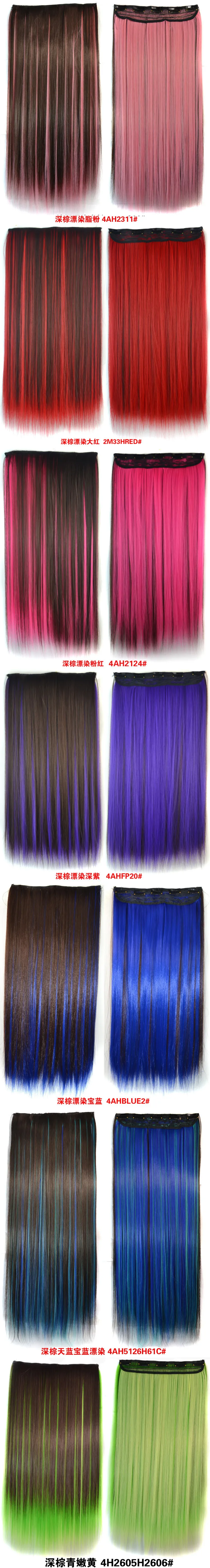 One Piece Clip In Hair Extensions Synthetic 5 Clips In Hair Piece for Women 24 inch Red Pink Long Straight Clip on Hair Piece
