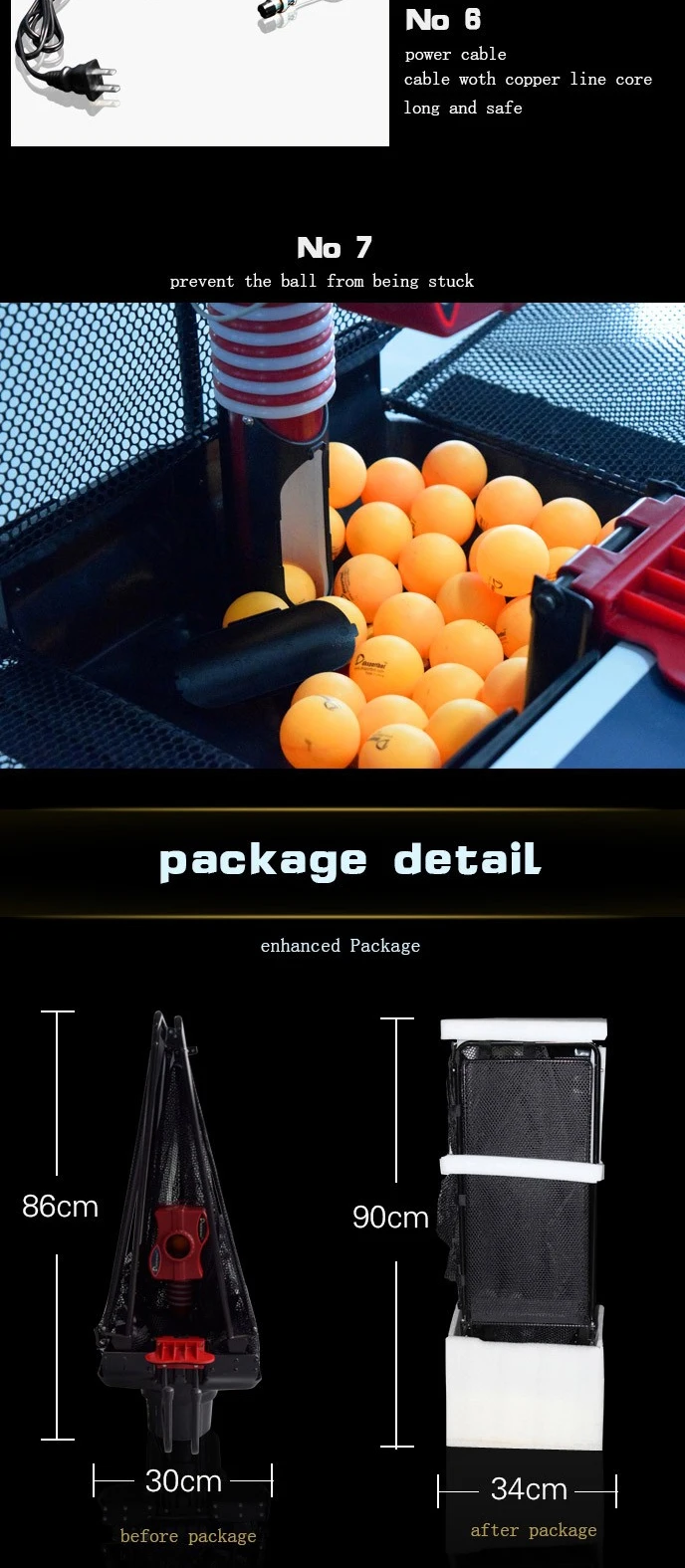 165*150*78cm | 5.4kg | 110v-240v | 35-90balls/minute |