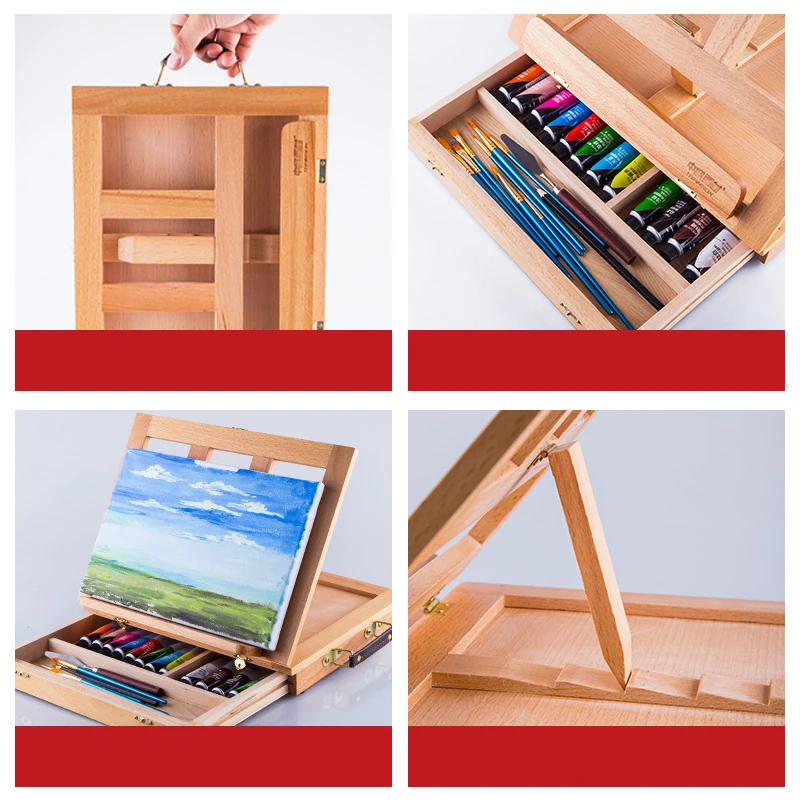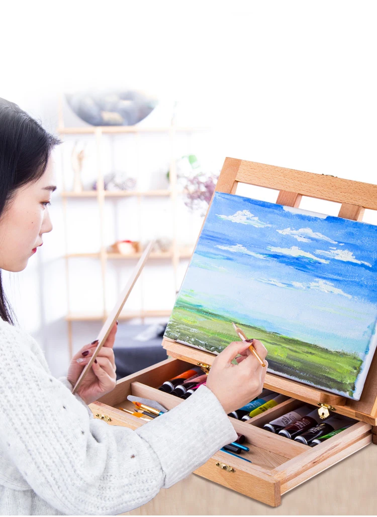 Portable Wooden Table Easels for Painting Artist Kids Sketch Drawer Box Desktop Laptop Accessories Suitcase Paint Art Supplies