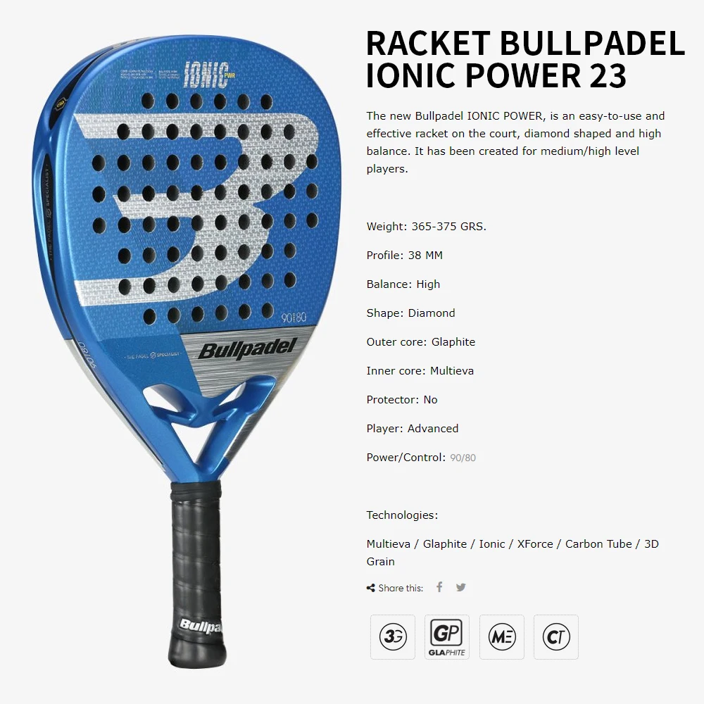 RACKET BULLPADE AXYM IONIC POWER 23 Tennis Racket Shockproof Carbon Fiber Tennis Racquet 375g Fast Control Tennis Pade