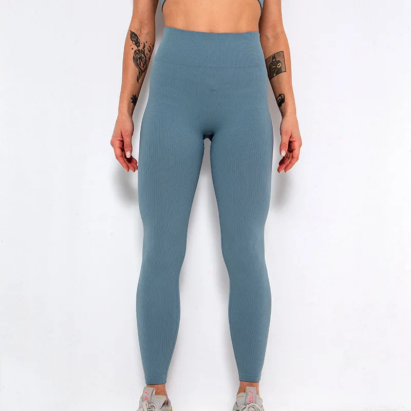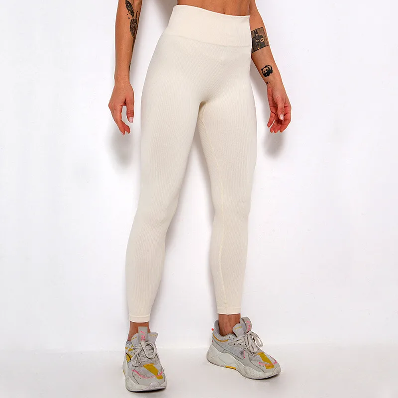Ribbed Yoga Pants High Waisted Gym Leggings Sport Women Fitness Seamless Female Legging Tummy Control Running Training Tights