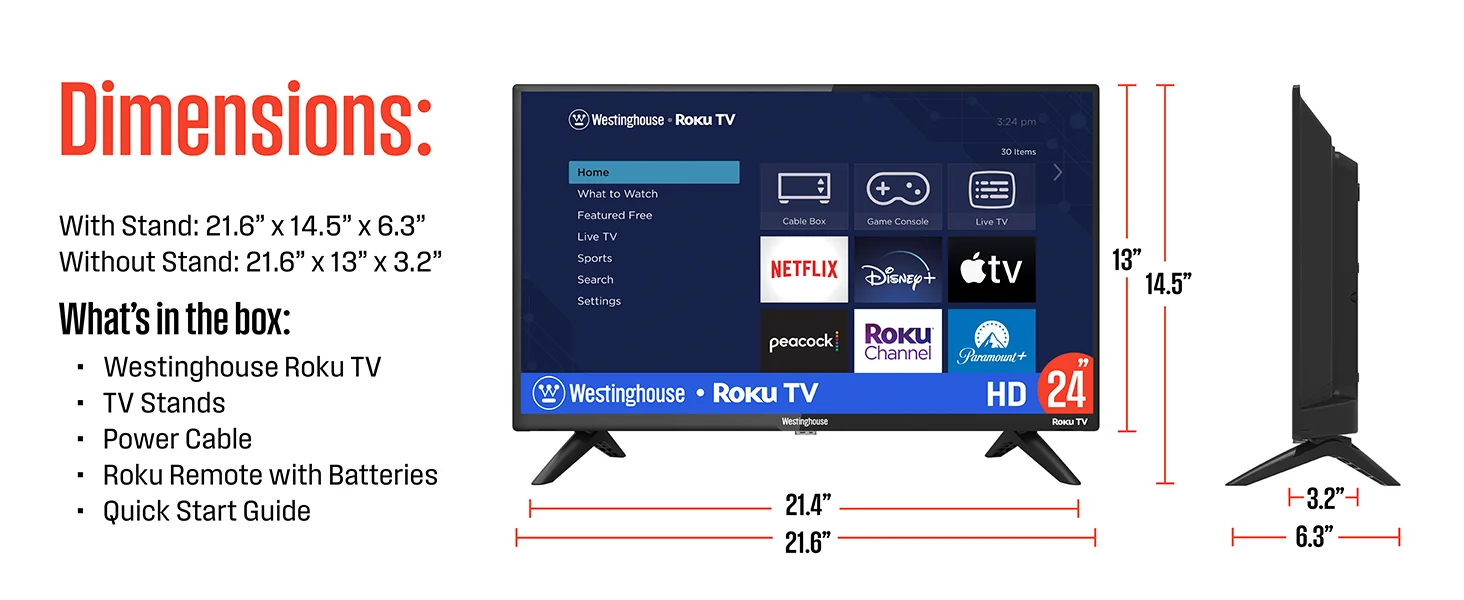 Roku TV - 24 Inch Smart TV, 720P LED HD TV with Wi-Fi Connectivity and Mobile App, Flat Screen TV Compatible with Apple Home
