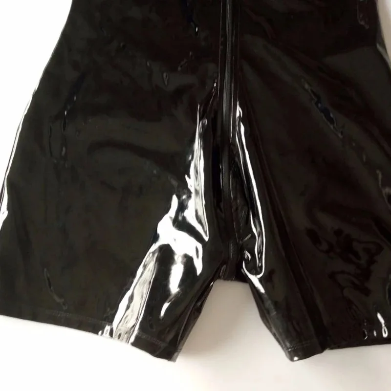 Short Sleeve Wet Look PVC Catsuit Shiny PU Leather Zipper Open Crotch Bodysuit Tight Hot Shapers Sexy Playsuits Swimsuit Leotard