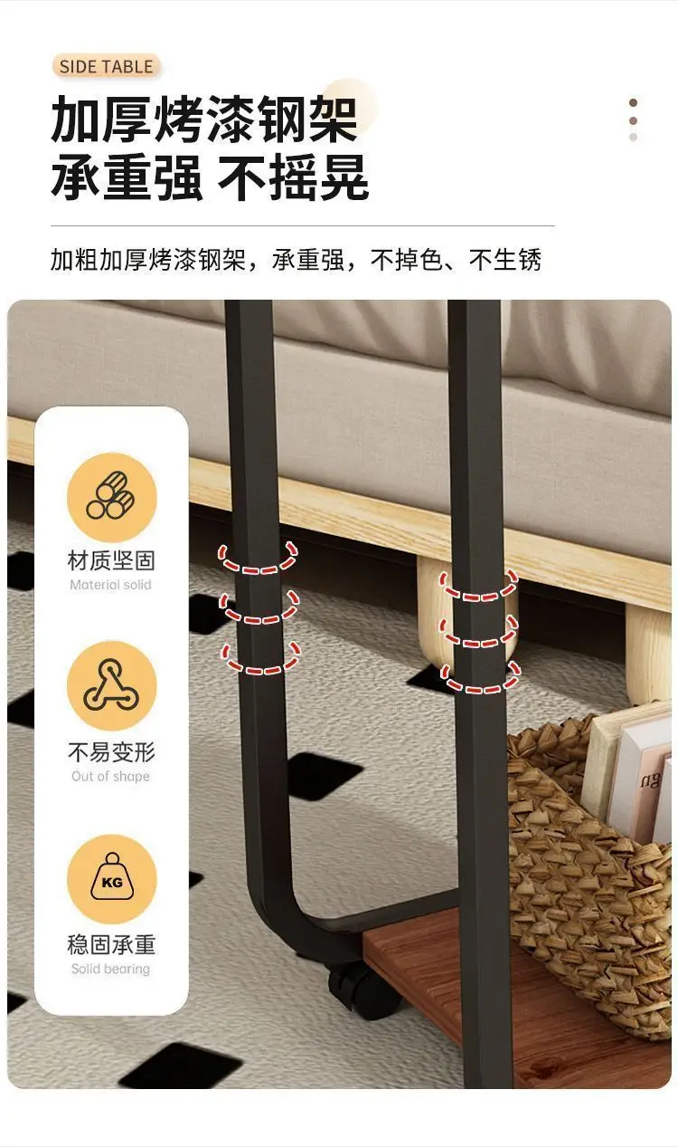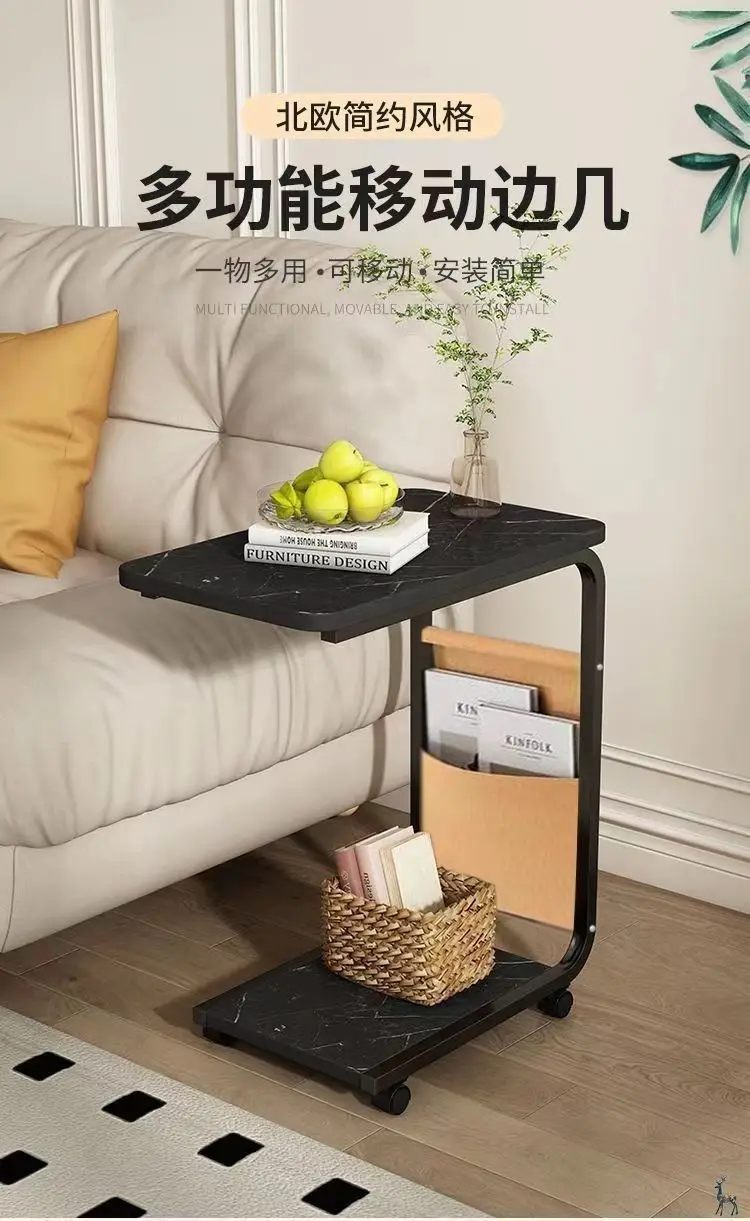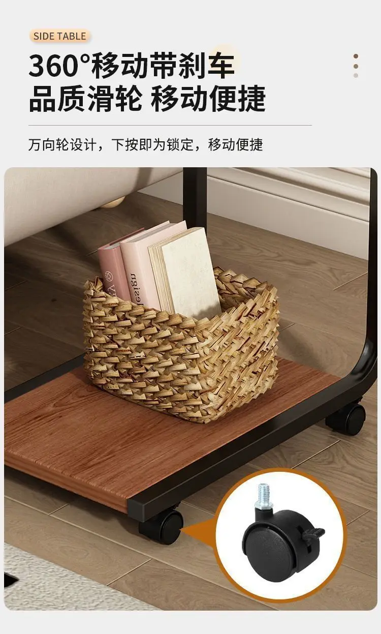 Side table, small coffee table, movable living room, sofa, side corners, pulleys, mini tea table, minimalist bedroom,End Tables
