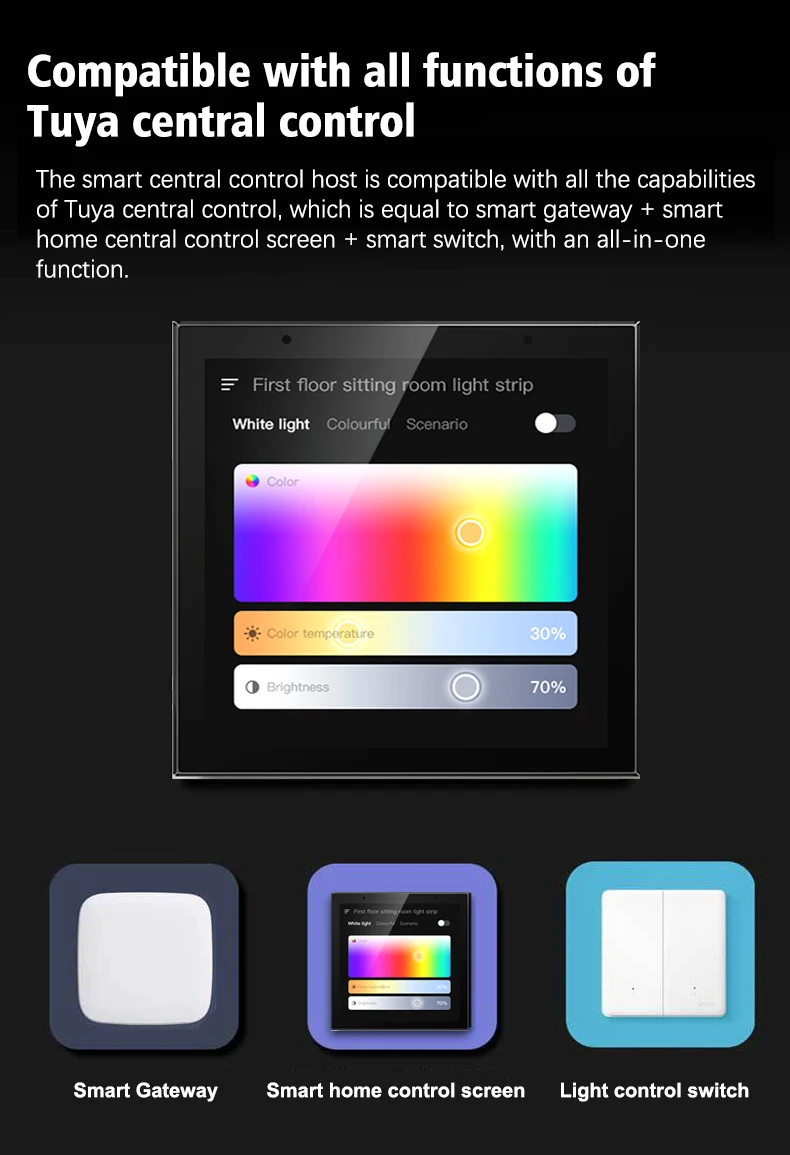 1.This host is connected to Tuya Smart Home. You can scan the code to bind this host through the Tuya APP. After the binding is successful, you can control Tuya Smart Home