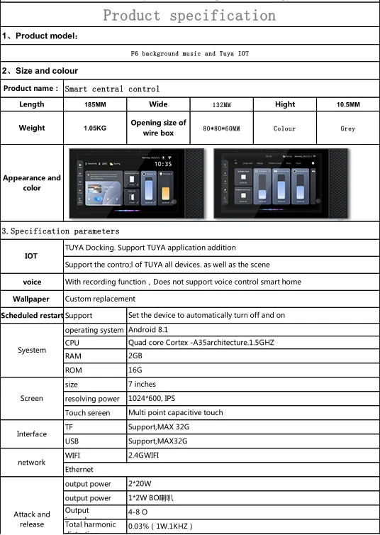2.Cortex1.5GHZ quad-core CPU, 7-inch multi-touch capacitive screen, 1024*600IPS high- definition resolution display; host system: Android 8.1 system;