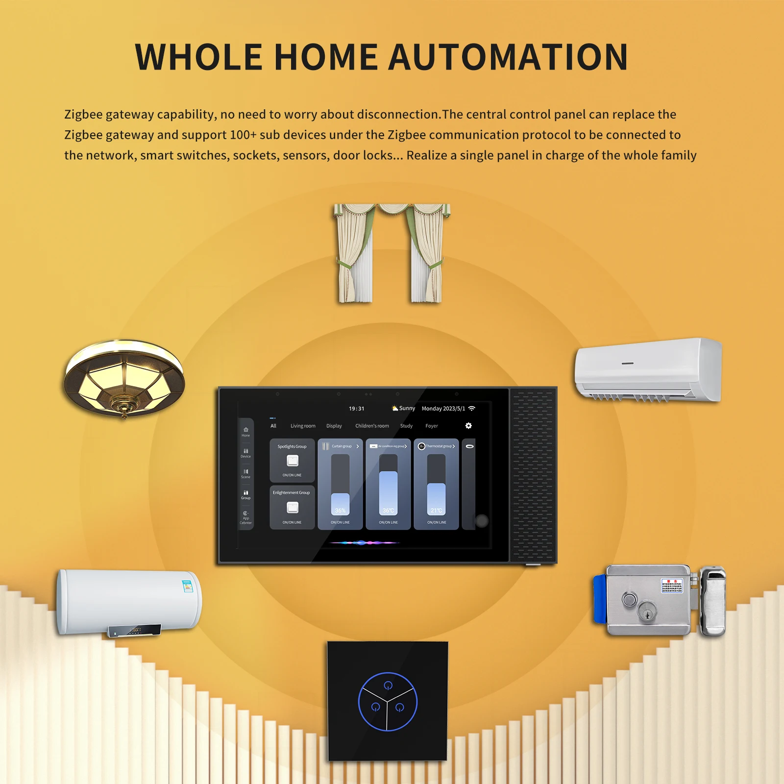 Smart Home Control Panel Controls Tuya Smart Curtains Light Air-Conditioners Wifi Touch Screen Home Automation Residential Panel