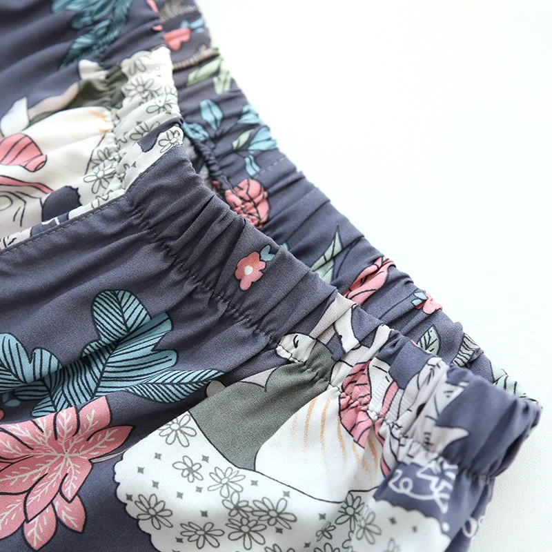 Spring and autumn ladies cute cartoon floral viscose fiber pajamas two-piece long-sleeved home service cotton summer thin shorts