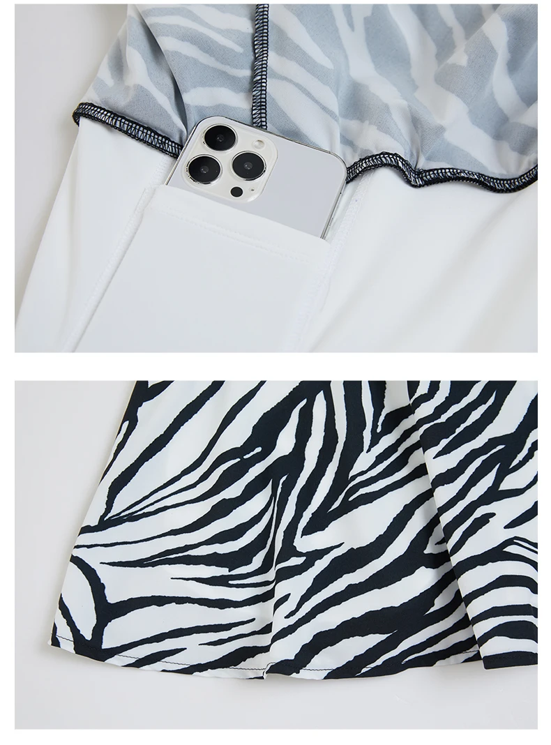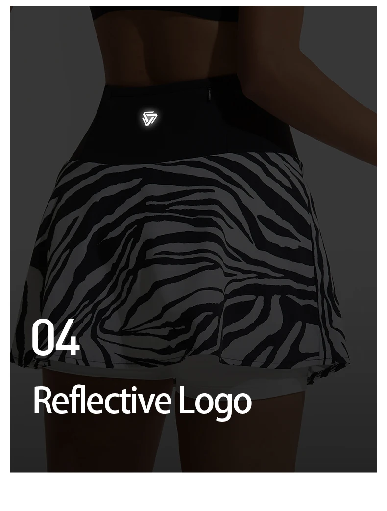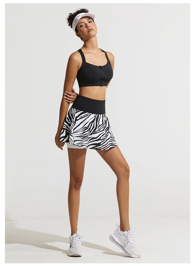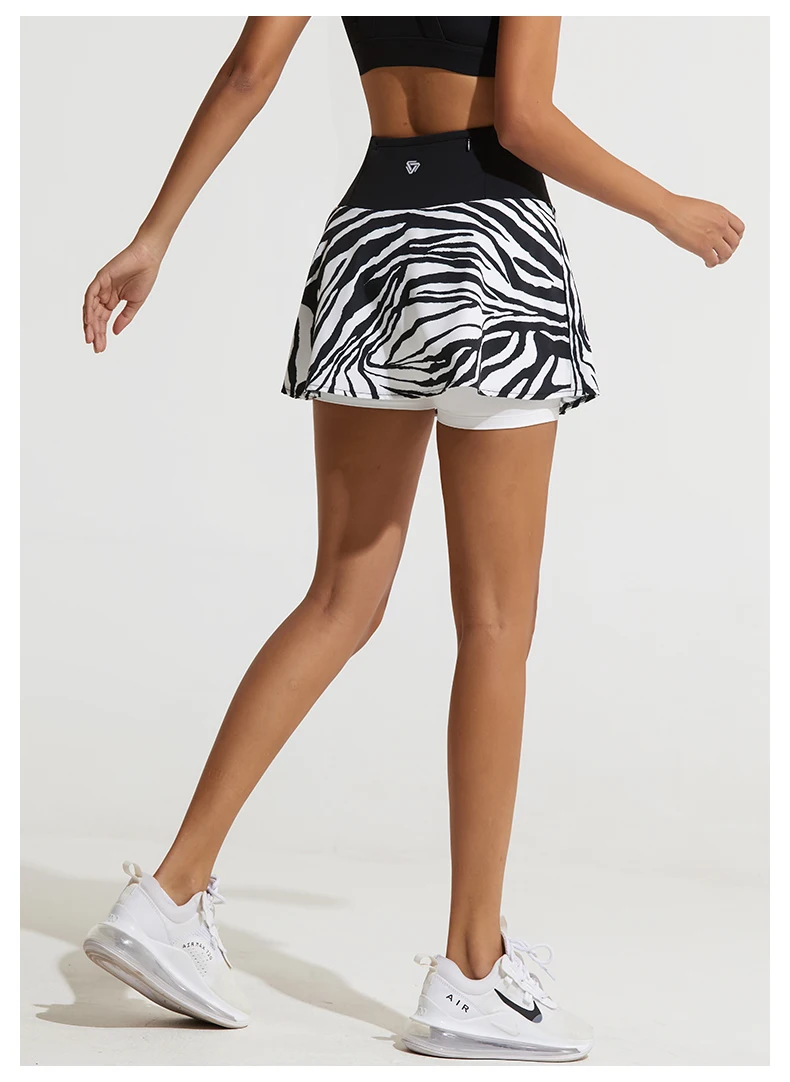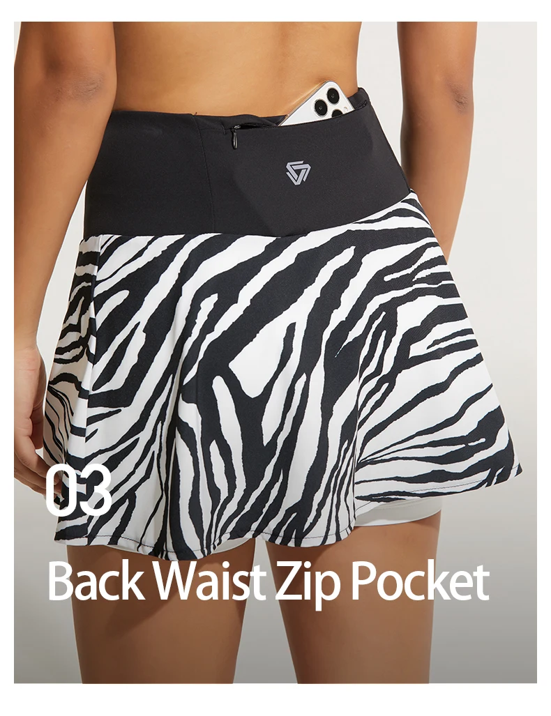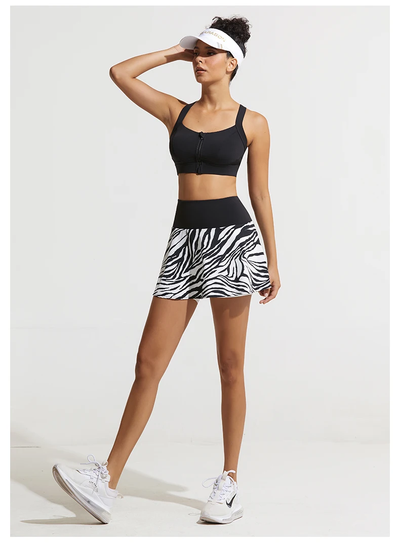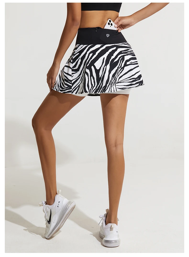 Summer Female Tennis Workout Sports Skorts Zebra Printed Women's Golf Wear High Waist Yoga Fitness Short Skirts With Zip Pocket