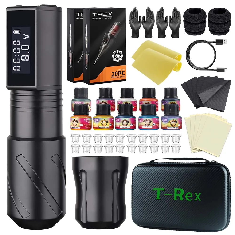T-Rex Professional Tattoo Gun Kit Cordless Rotary Tattoo Machine Pen Kit with 2 Replaceable Batteries for Long Runtime