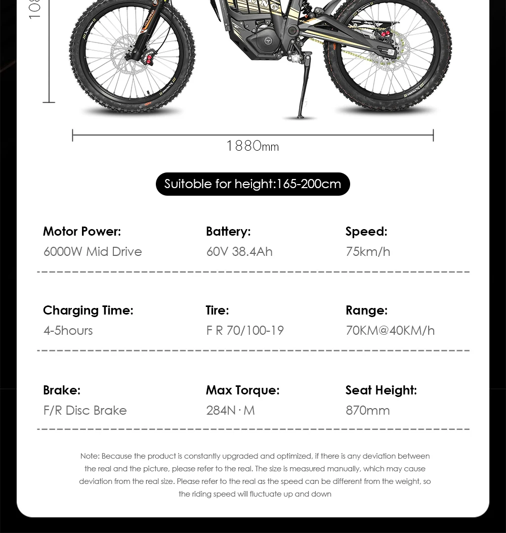 Talaria Sting R-Middrive Hybrid Ebike, Off-Road Electric Dirt Bike, Motorcycle Bicycle, 45Ah, 85km, H, 369 N.M, 60V, 8000W