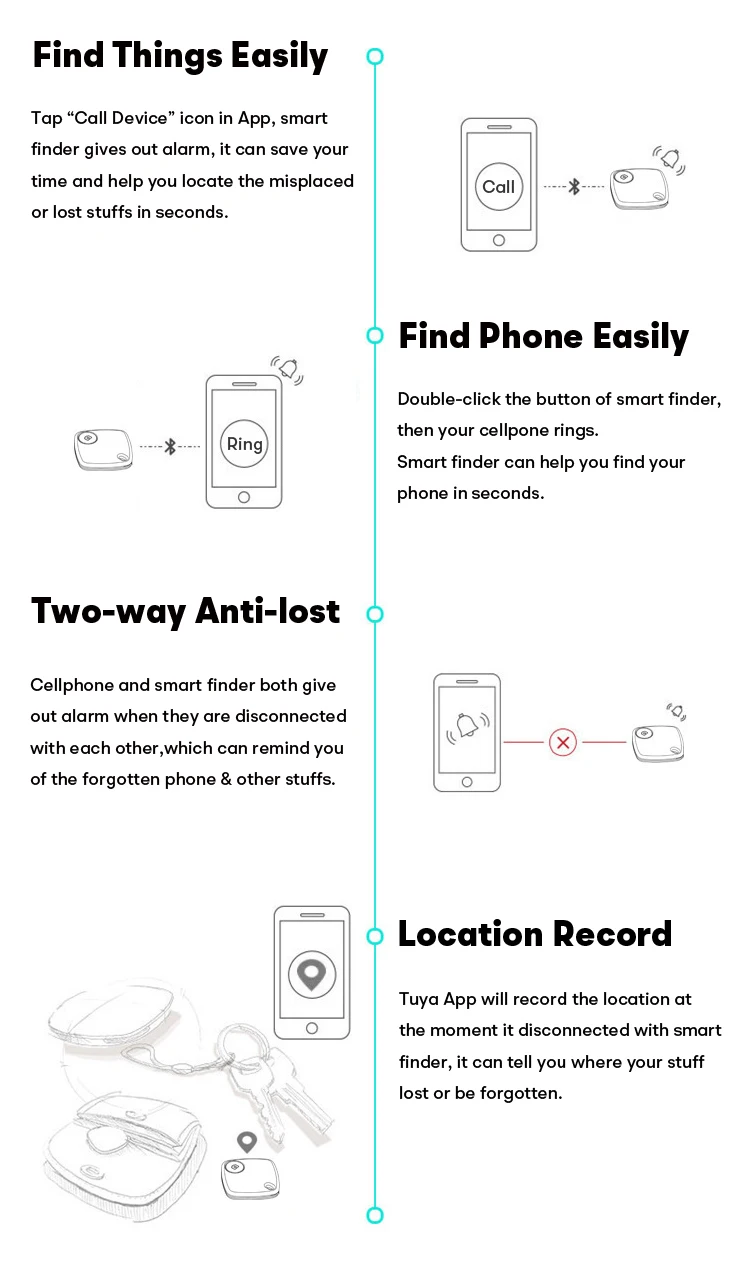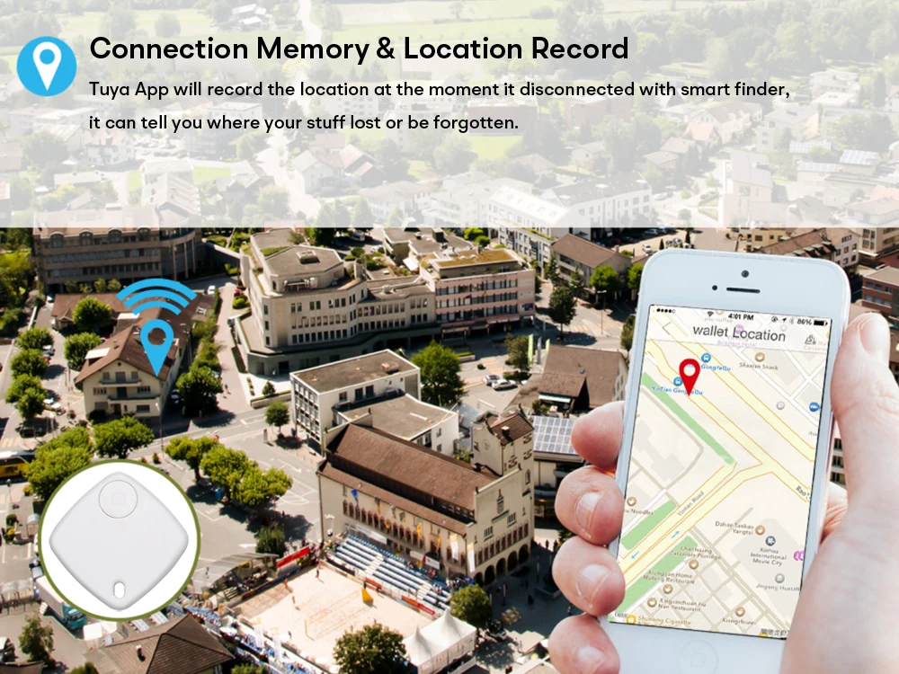 Tuya App will record the location at the moment it disconnected with smart finder, it can tell you where your stuff lost or be forgotten.