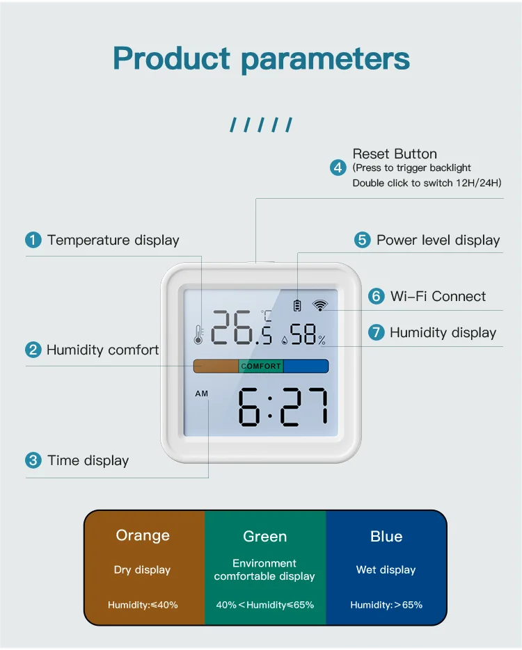 3 different colors Show different environment humidity levels,you can intuitively know the environment and take proper actions to make you always feel comfortable.