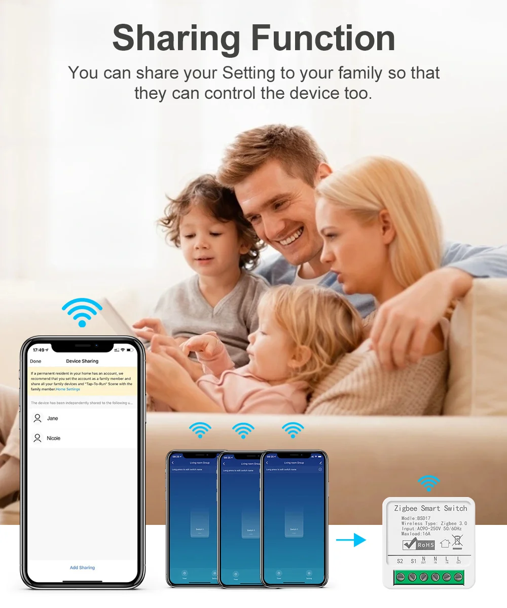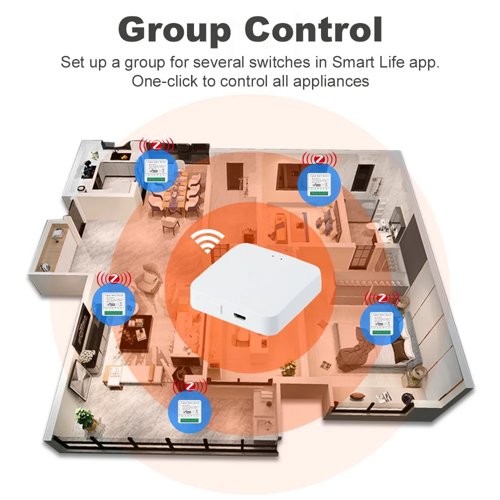 Group Control Set all of your smart switches in a group by Smart Life app. Then one-click to turn/off all of your appliances or lighting by smartphone.