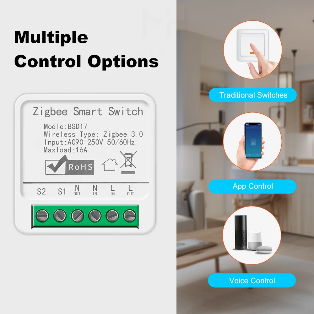 Voice Control The ZigBee DIY switch works with Alexa and Google Home Assistant to conveniently control the appliances with simple voice command when you are on go.