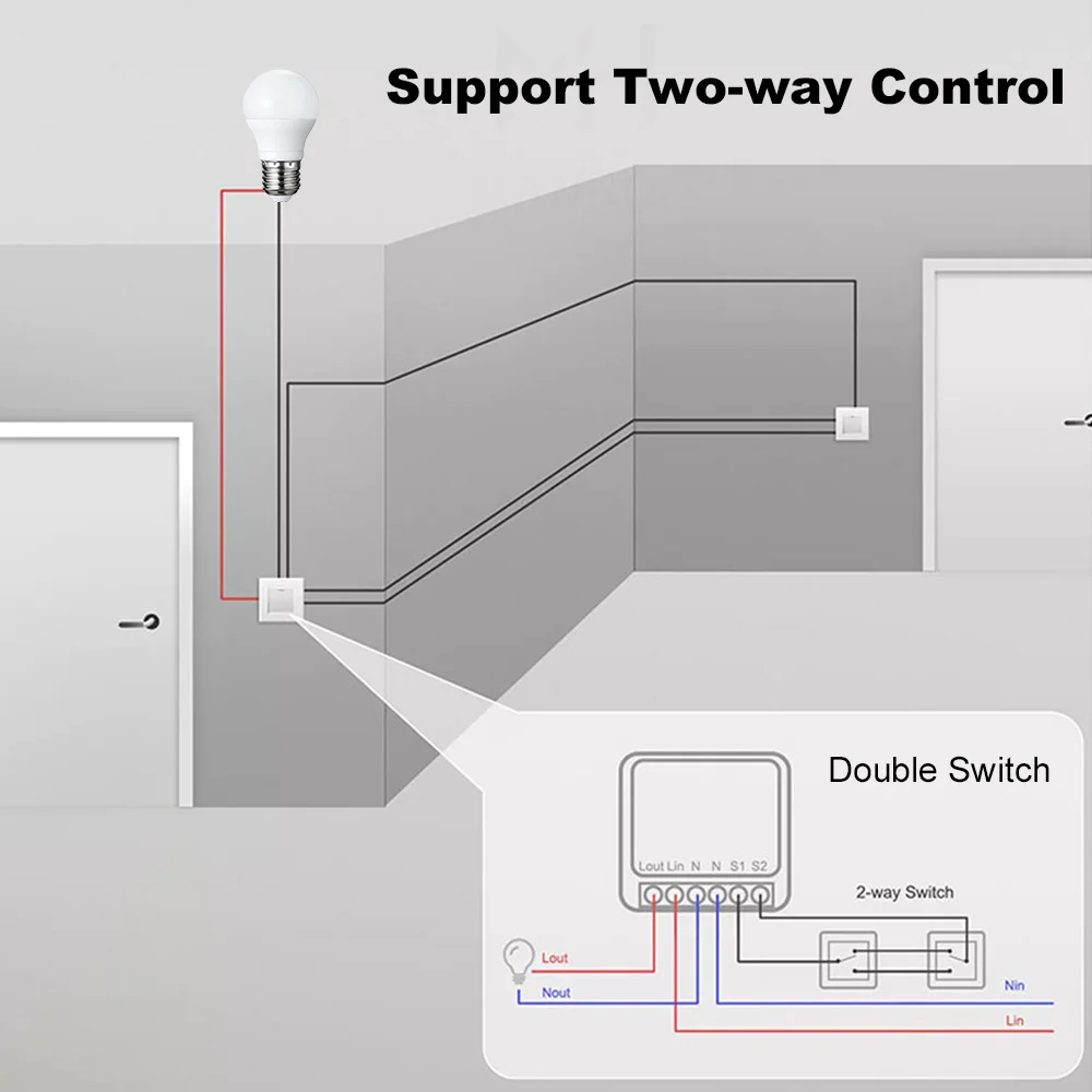 Support Two-way Control This smart DIY switch could be used for your old 2 way control switch. Especially, you still available to control the old switch manually after isntalled it.