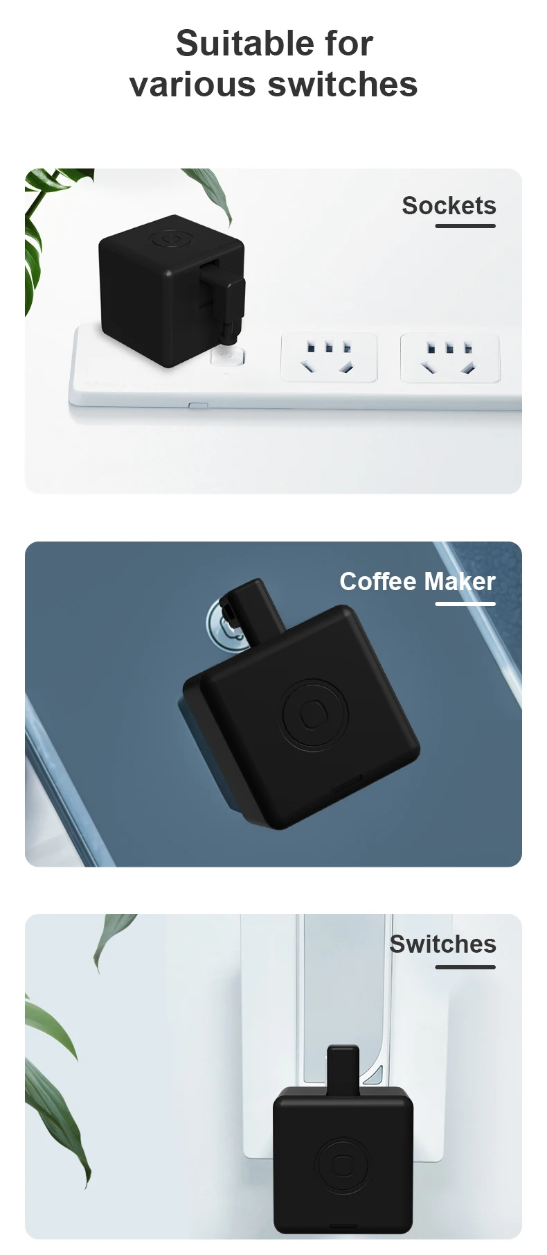 Fingerbot is the world’s smallest robot for smartly controlling different types of buttons and switches. It can control your existing home appliances with robotic clicks. Switch lights via app, schedule a morning coffee, activate your vacuum cleaner with voice command, and remotely power on your office PC. Now all these become effortless with Fingerbot