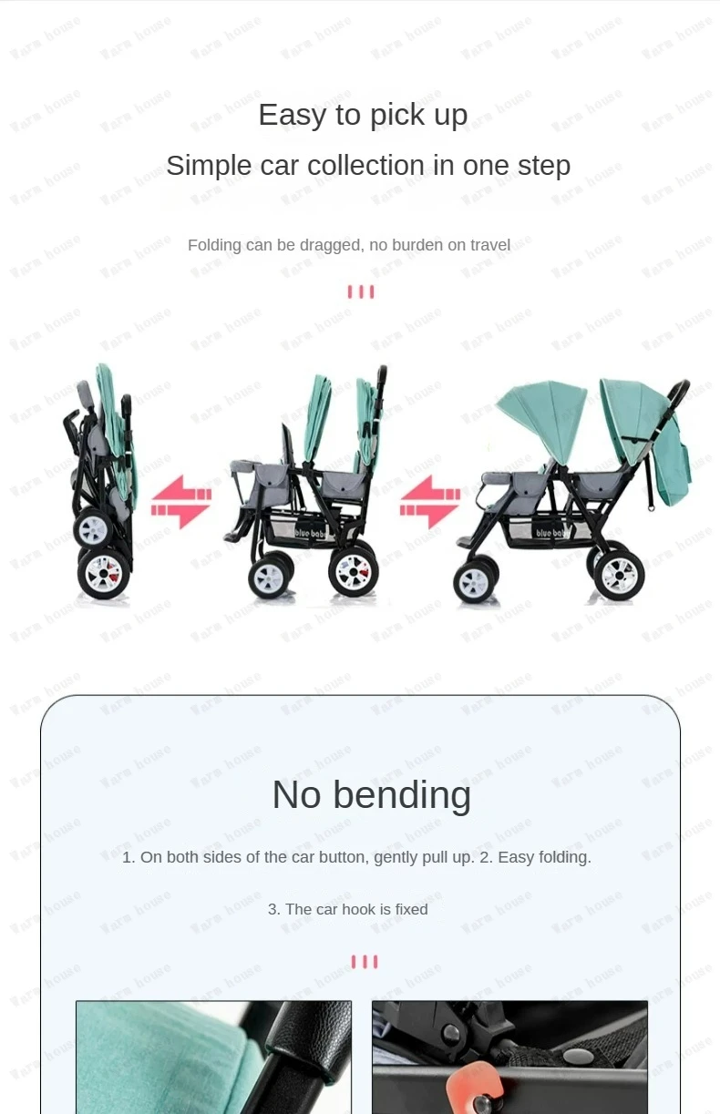 Twin Stroller Lightweight, Foldable, Seatable and Reclining Second Child Double Baby Stroller Multifunctional Double Travel Car
