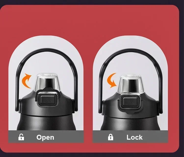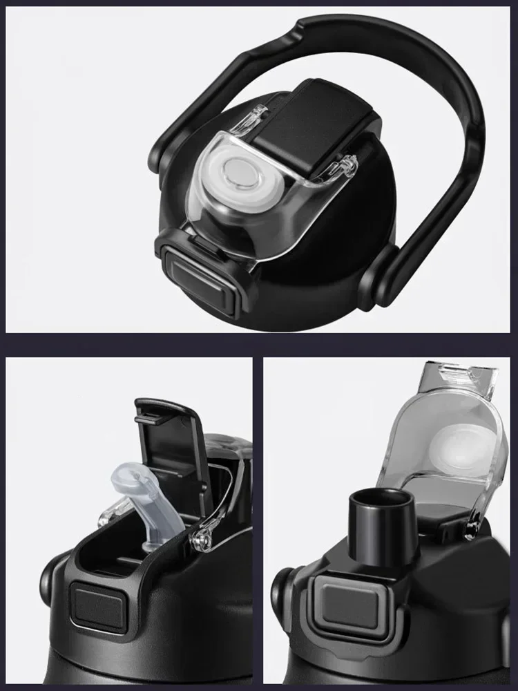 Just push the button with one hand, the straw will pop out automatically, our insulated water bottle with straw gives you an easier way to drink water. The straw is removable, you can enjoy sipping with straw or fast water flow without straw. This upgraded lid comes with a safety lock and dust-proof cap that ensures 100% leakproof and healthy daily water drinking.