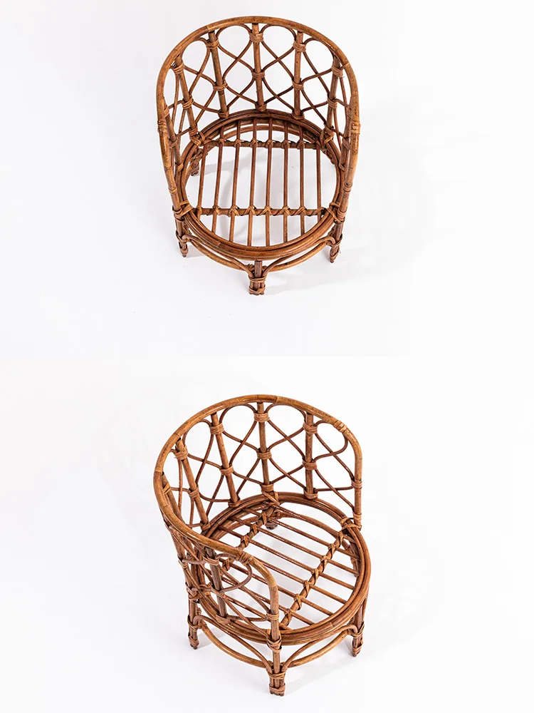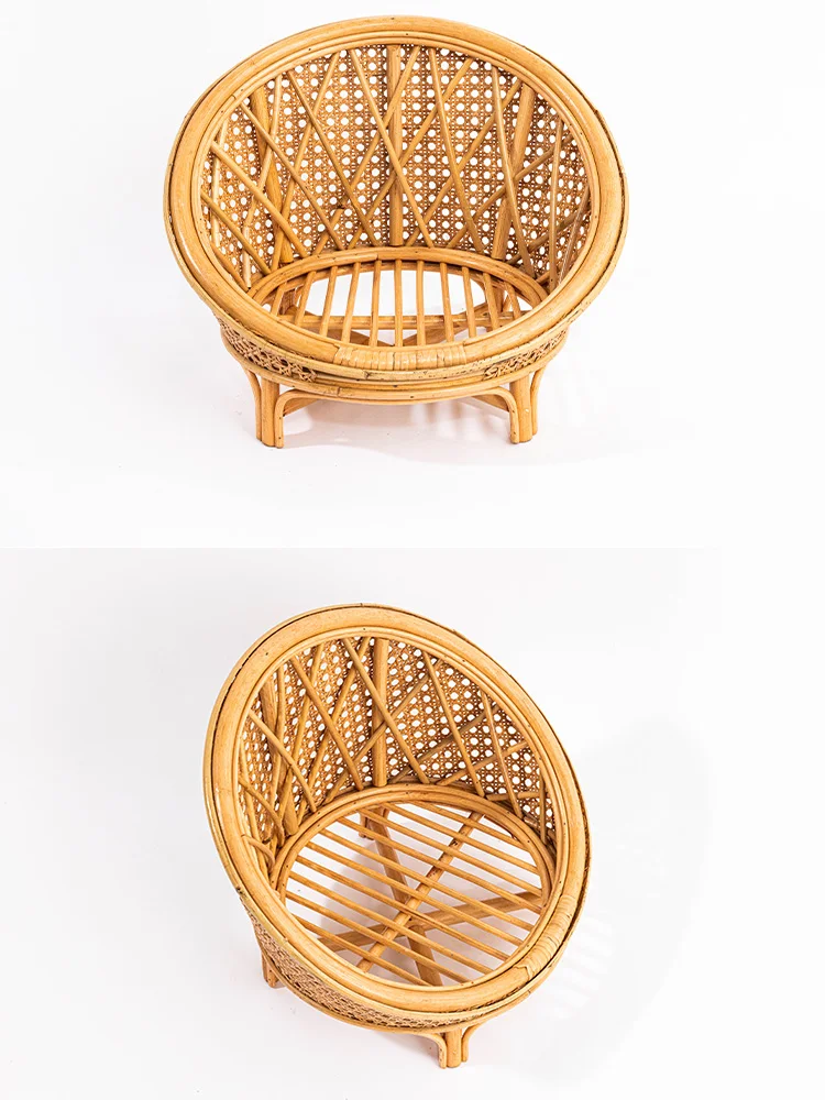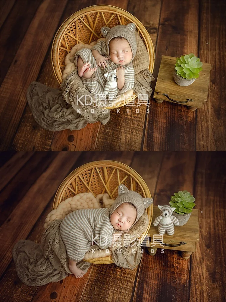 Vintage Rattan Chair For Newborn Photography Props Studio Infant Mini Bamboo Woven Small Bed And Baskets Photoshoot Accessories