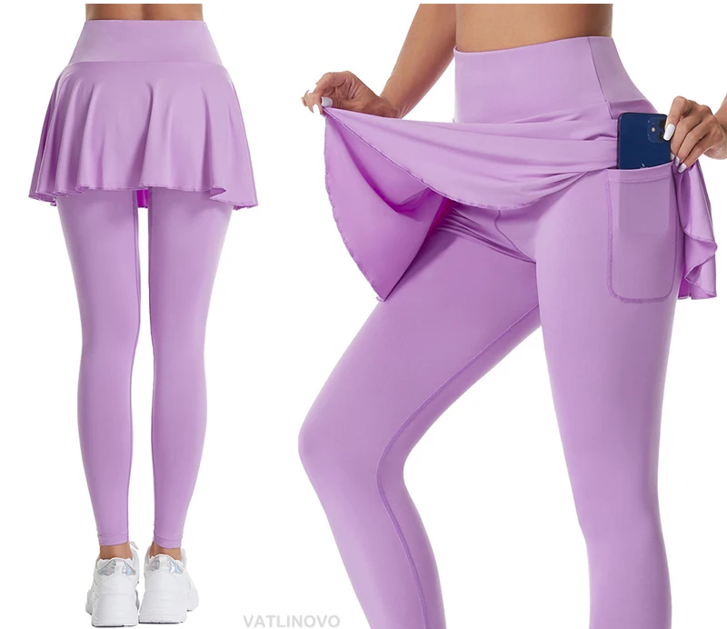 VITALINOVO Tennis Skirted Leggings with Pocket for Women High Waisted Active Skort Active Ruffle Pleated Golf Skapri with Skirt