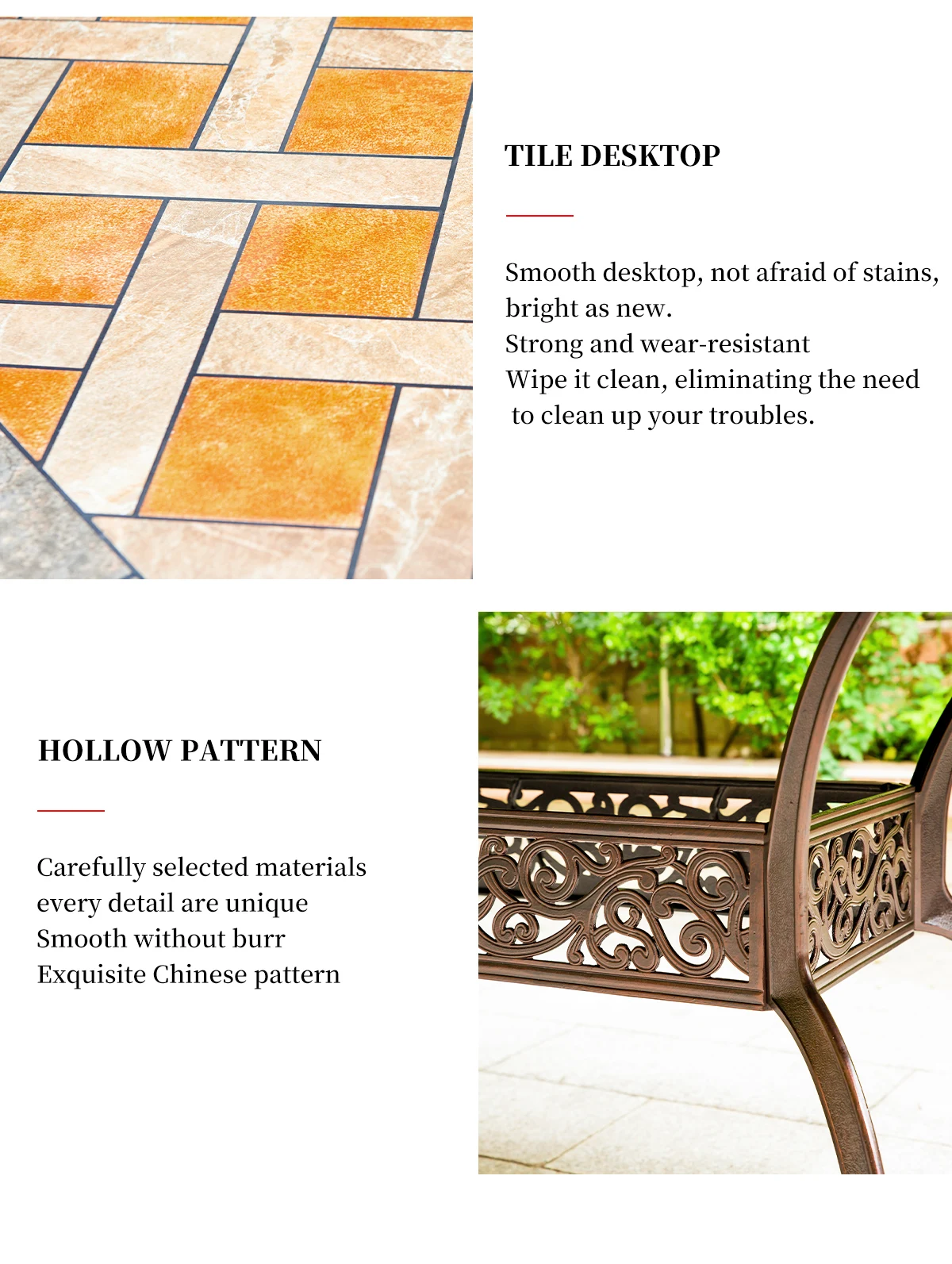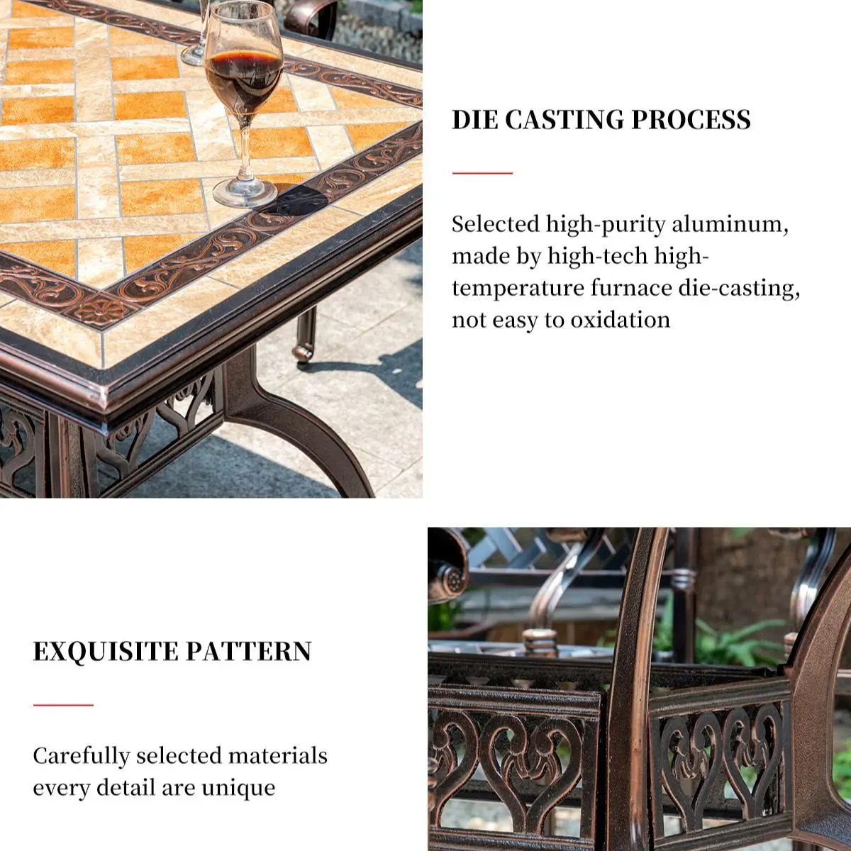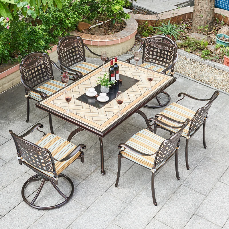 Waterproof Outdoor dining table with BBQ garden Restaurant Cast Aluminum ceramic tile table Patio Furniture Set With Baking tray