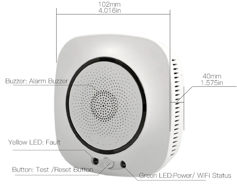 App Remote Control / Gas Detection / Voice Reminder / WiFi 2.4GHz / 75dB loud / Remote Self-test