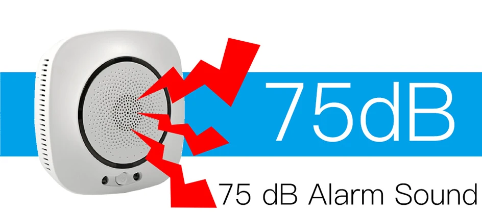 Once the alarm density is not in the range of 6%LEL±3%LEL(natural gas), the detector will issue a 75dB alarm sound and push a notification to your App automatically.