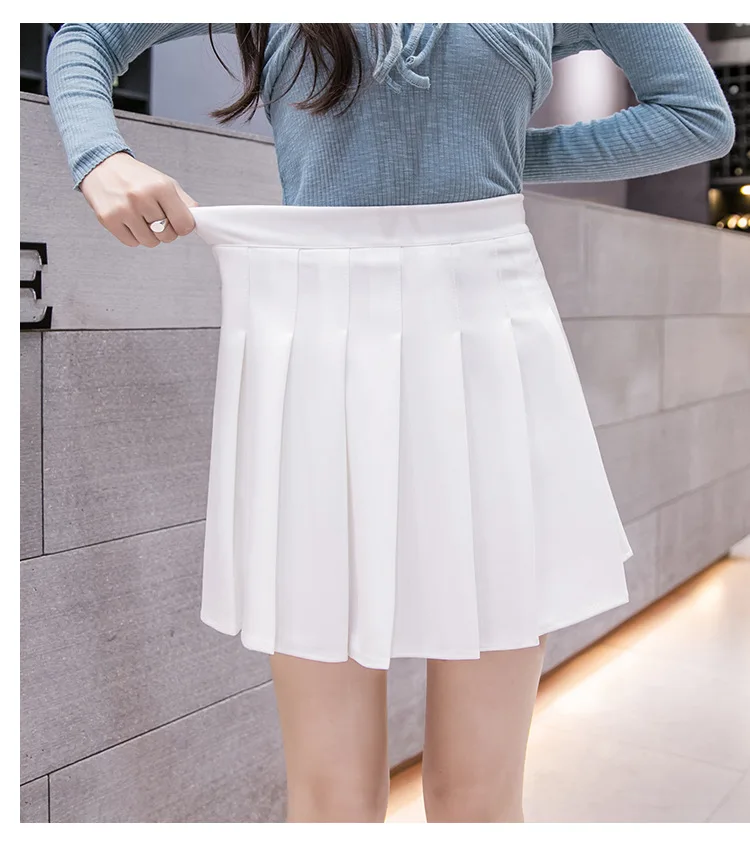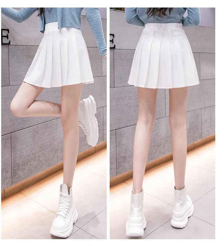 Women Pleated Tennis Skirt High Waist Mini Skirts With Shorts Girl Basic Casual School A-line Skater Skirts Korean White Black