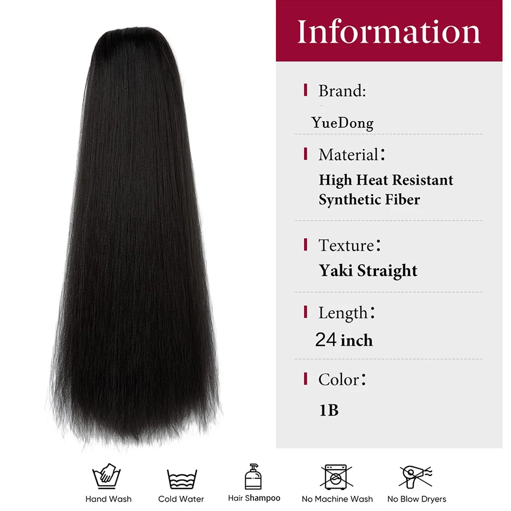 Women's drawstring ponytail extension, 24 inch YaKi straight ponytail extension, girls' synthetic hairstyle