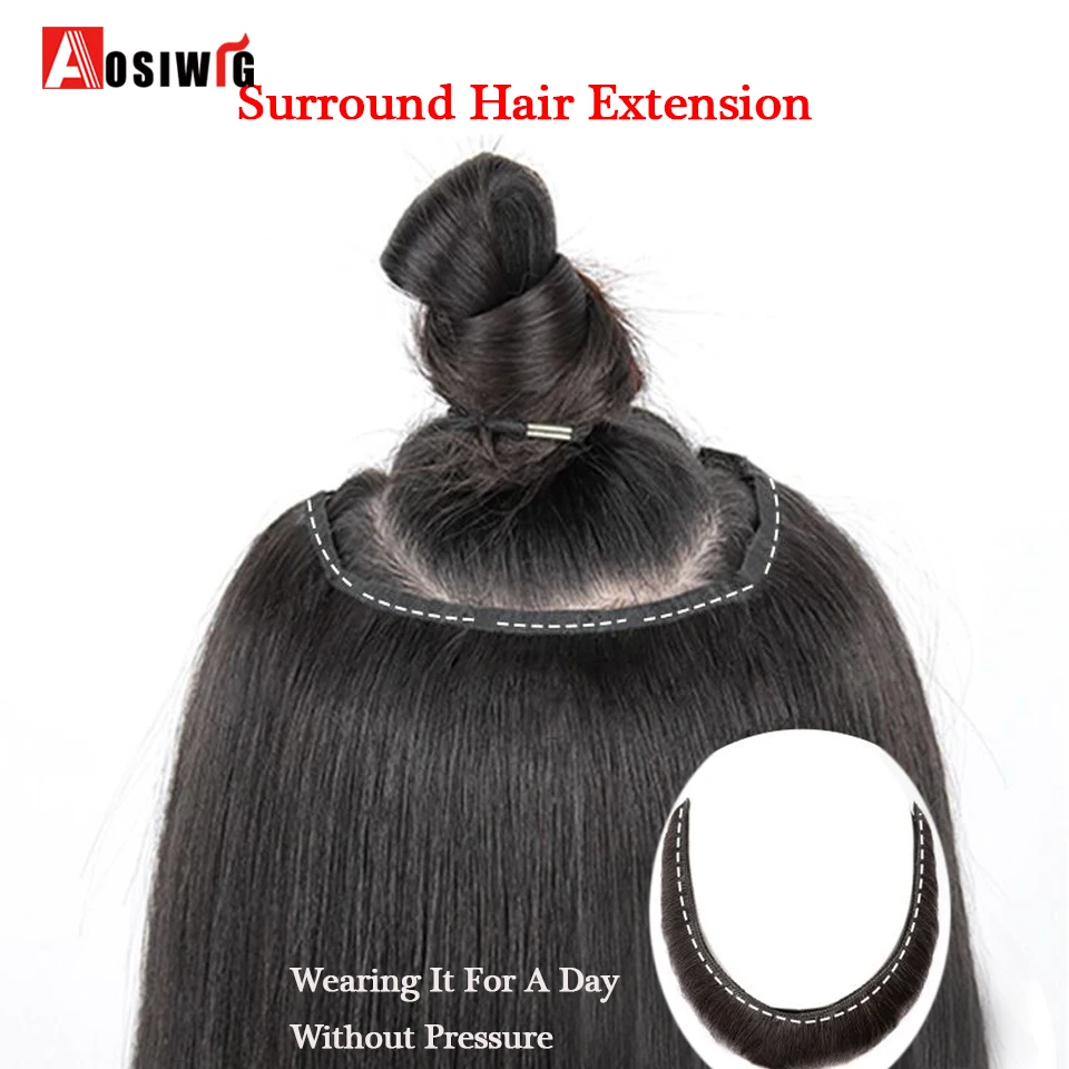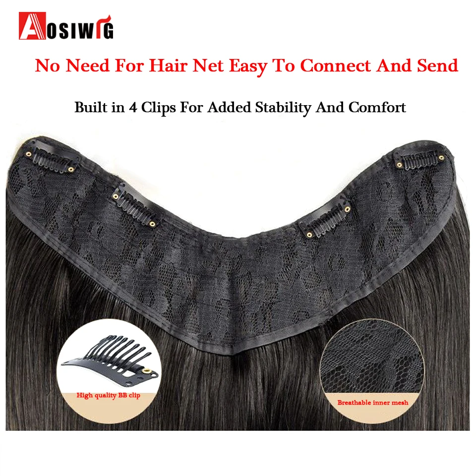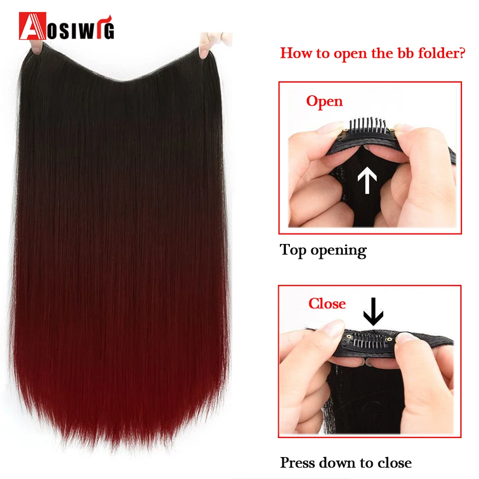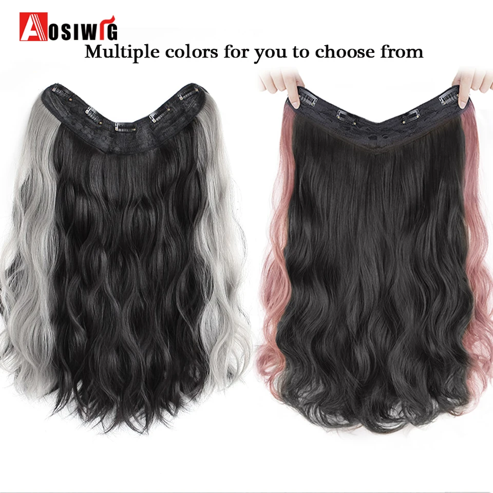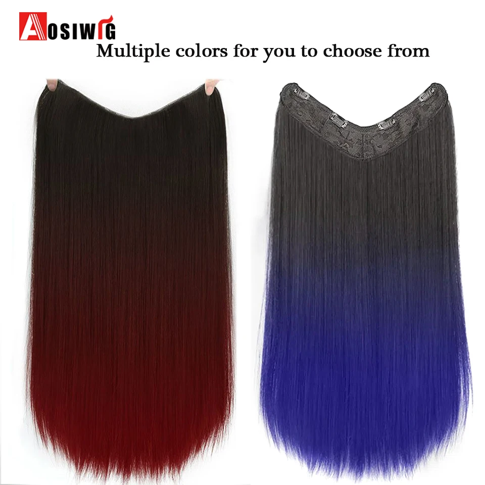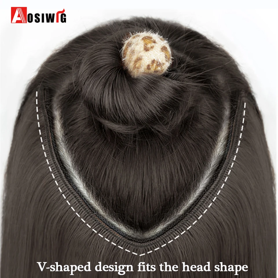 Women's V-Shaped Long Hair Extension Synthetic Wig Layered Hair Extension Hair Pad Fluffy Top Increase Hair Volume
