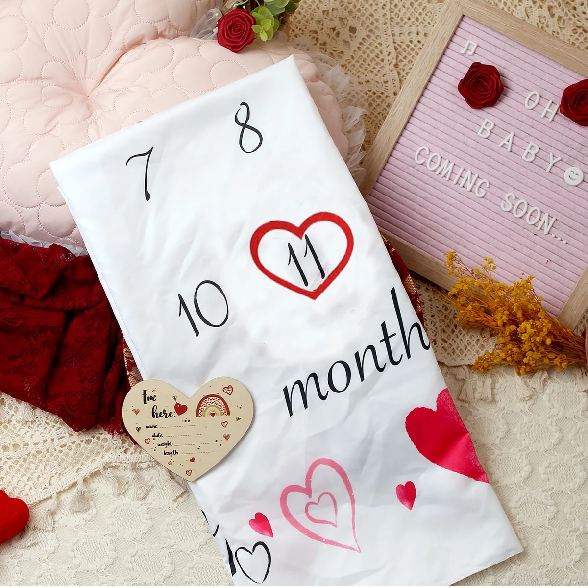 Ylsteed Christmas Festival Newborn Photography Props Valentine's Day Heart Print Baby Milestone Blanket Photo Shoot Backdrop